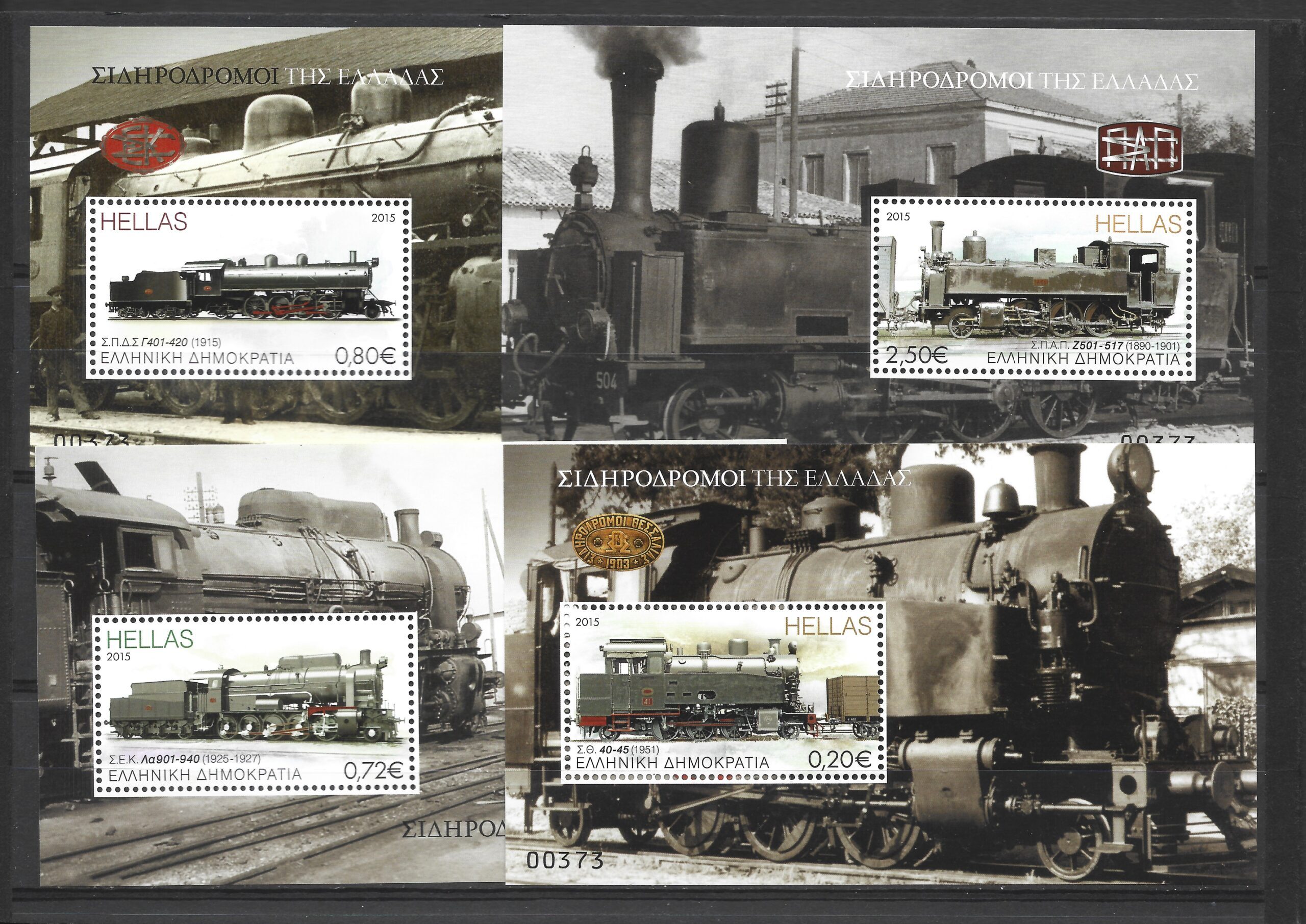 2015 Set of 4 Miniature sheets “Railways of Greece” inside special folder. Quantities 8.000. The serial number maybe will be different from the one you will receive.