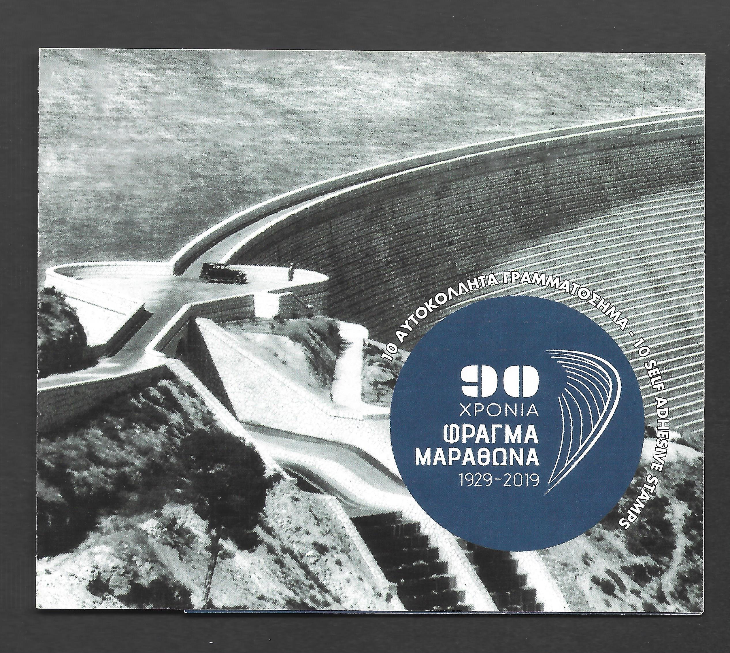 2019 “90 Years Μarathon Dam 1929-2019” booklet of 10 self-adhesive stamps (Β134) with stamps of 1€. 2500 booklets were issued. Complete and unused.