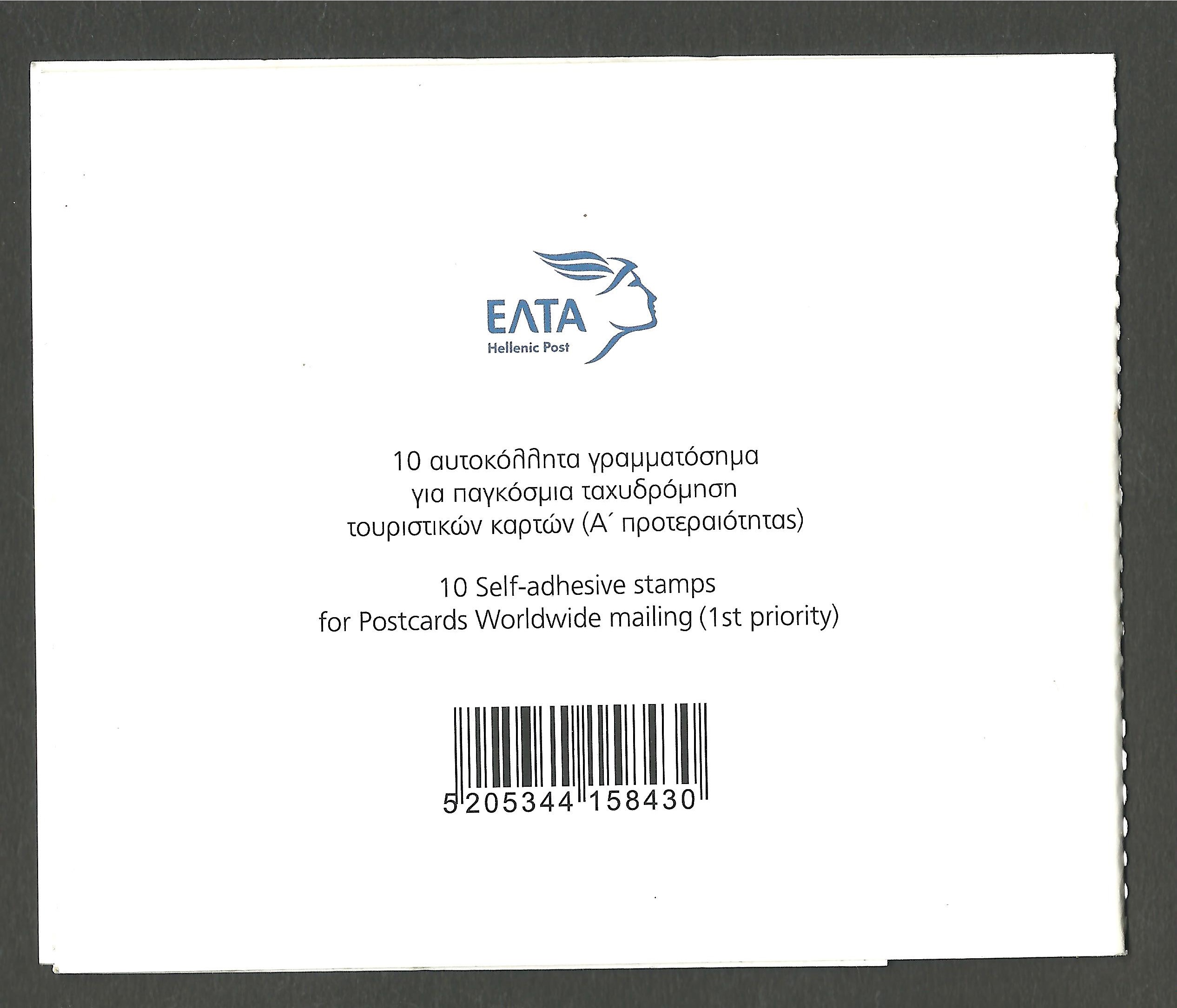 2019 “MECEANES” BOOKLET OF 10 SELF-ADHESIVE STAMPS A’ PRIORITY (Hellas B125)