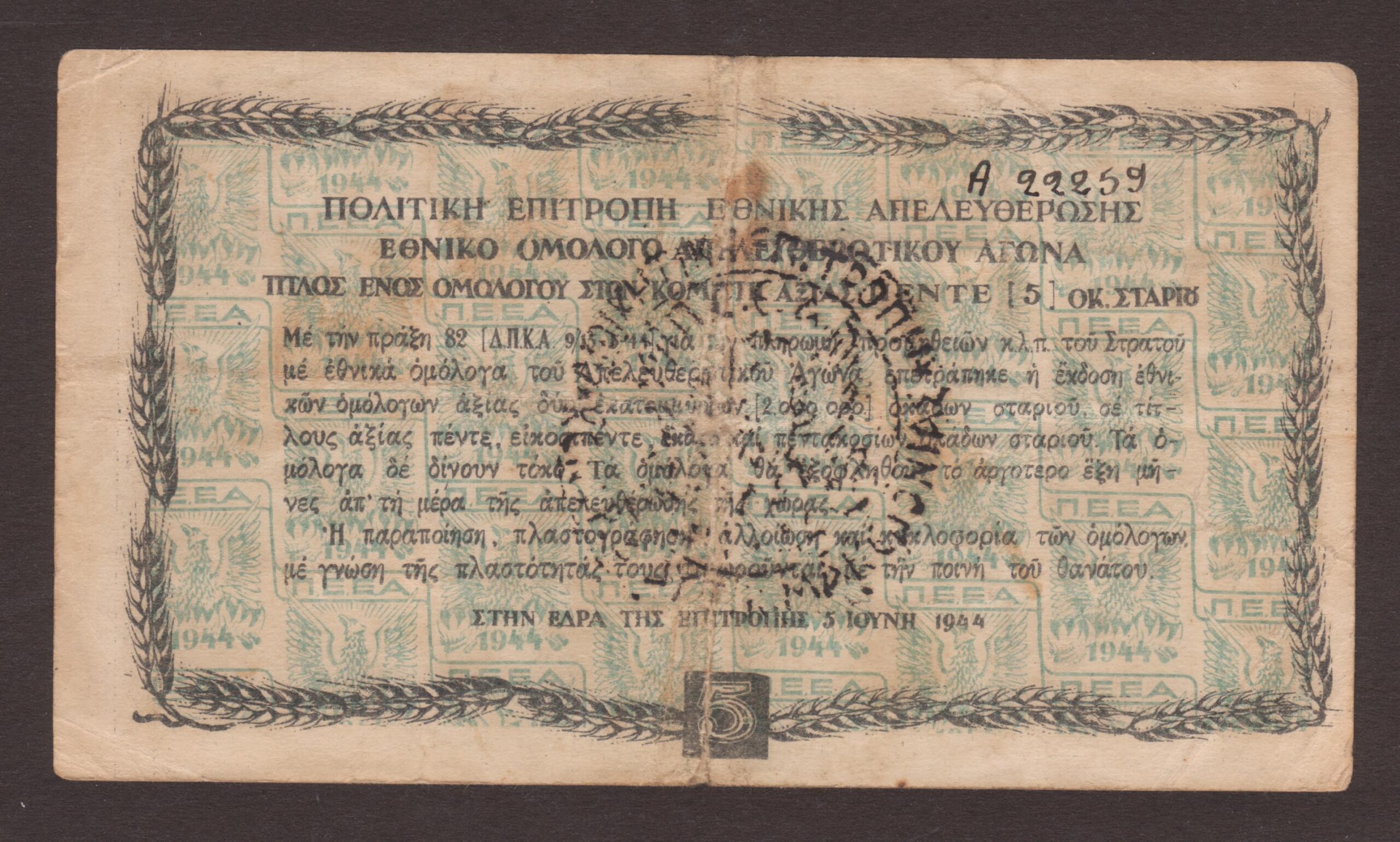 5 OKADES 23/08/1944 RARE “MACEDONIA BLACK SIGNATURE”