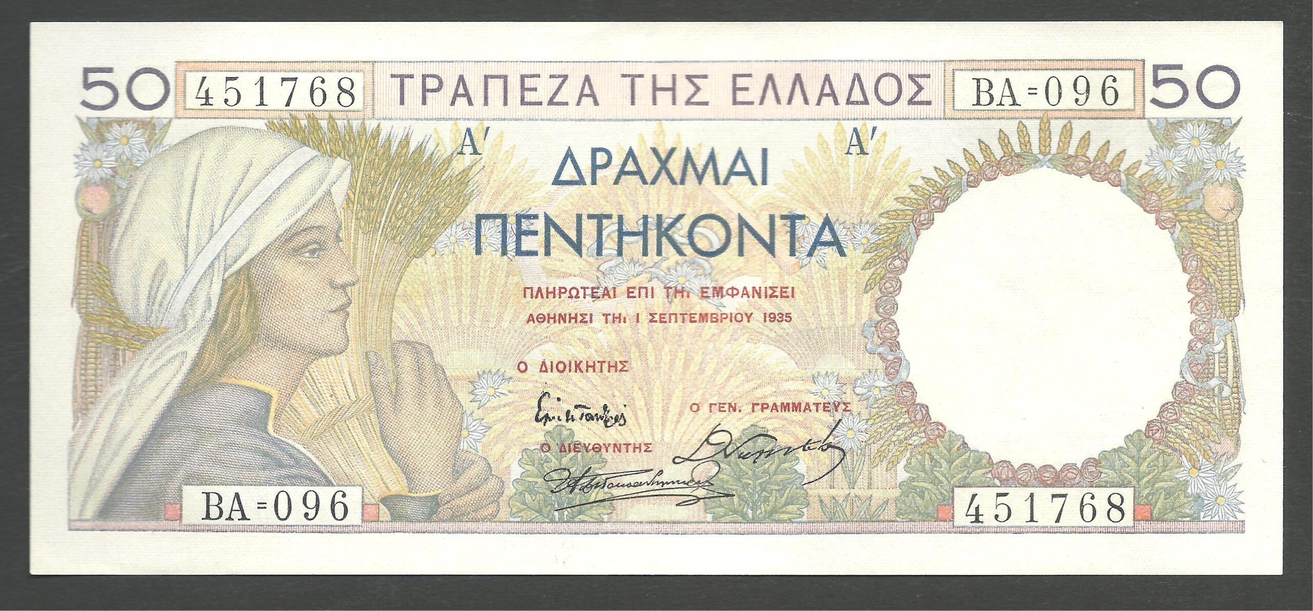 50 DRACHMAS 01/09/1935 “SILK” AUNC