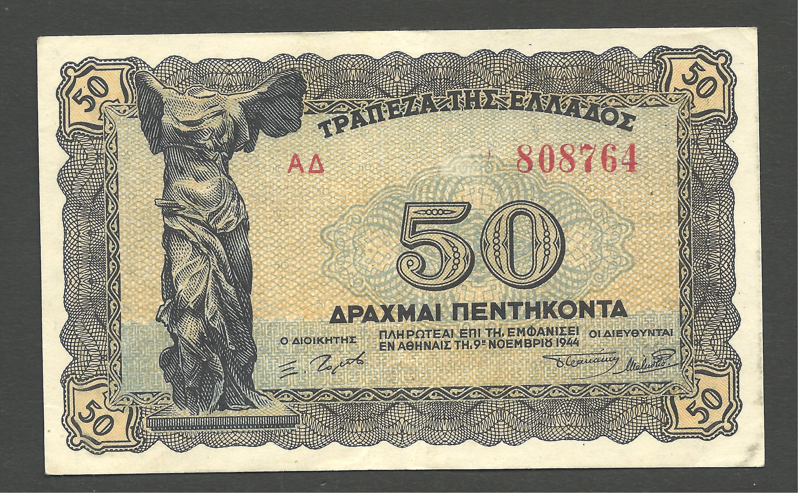 50 DRACHMAS 09/11/1944 (NEW DRACHMA) EXTRA FINE