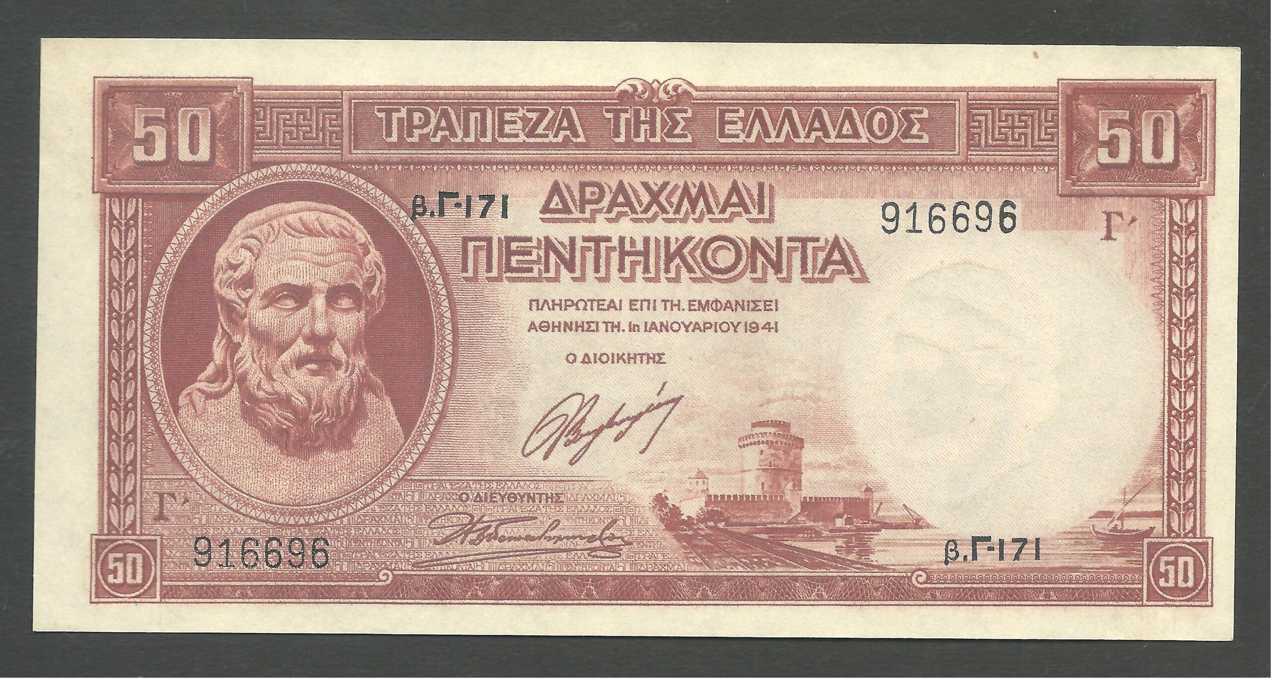 50 DRACHMAS 1941/01/01 3rd EDITION.”Hellas 161″.