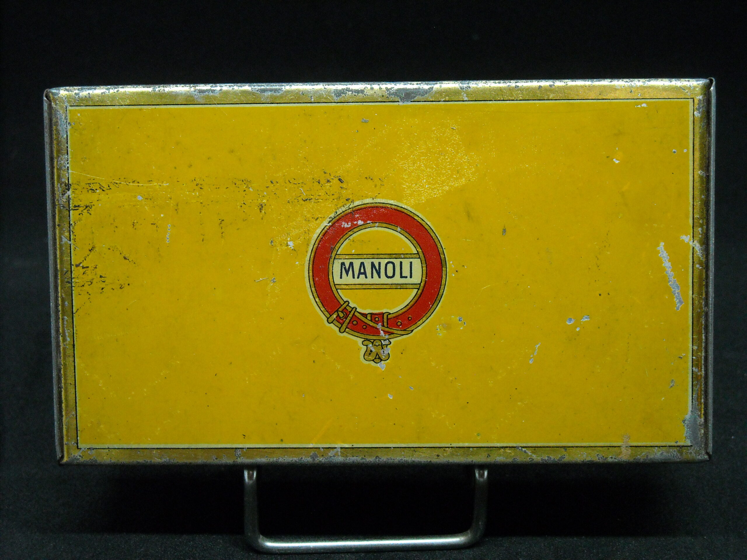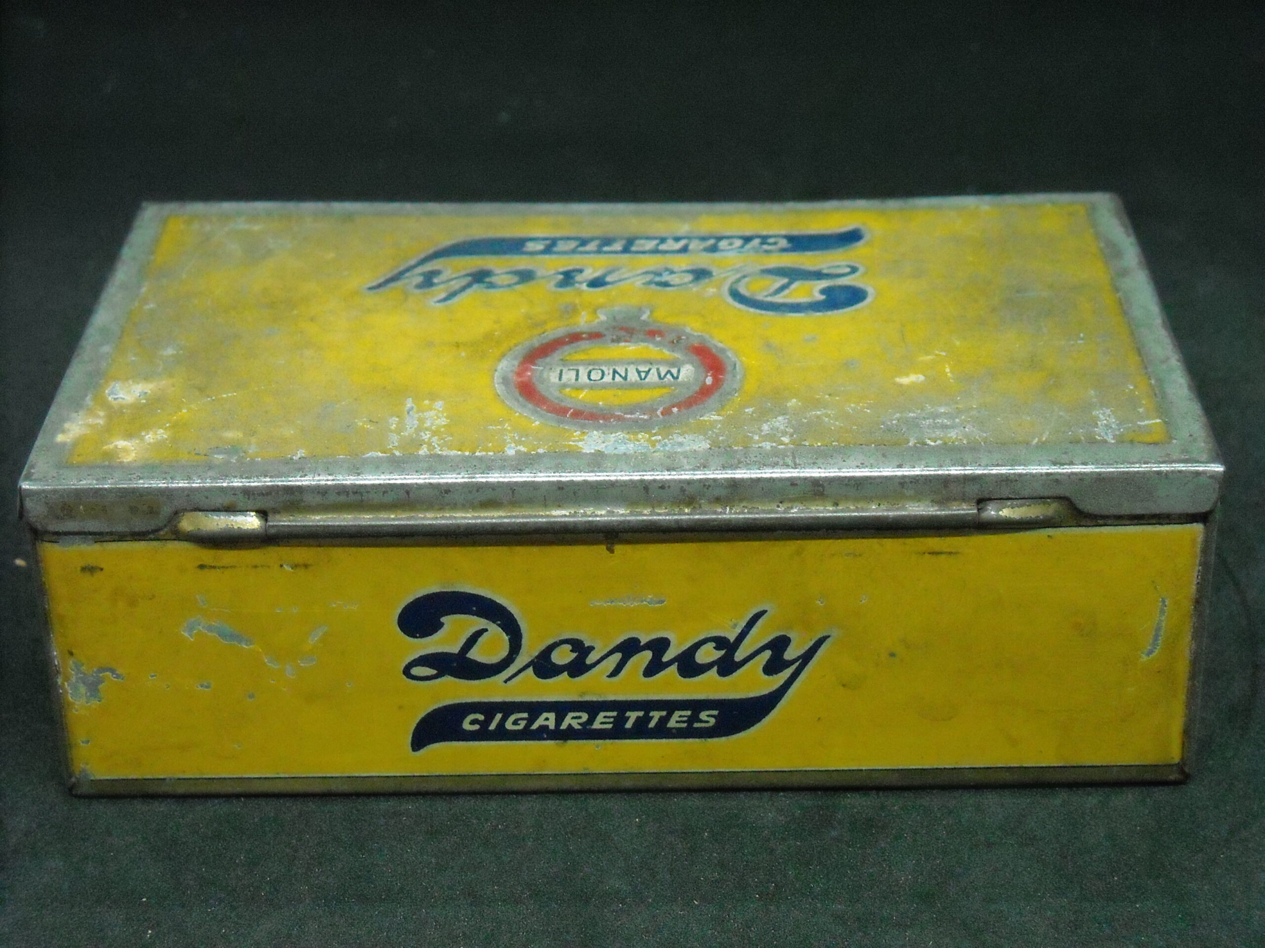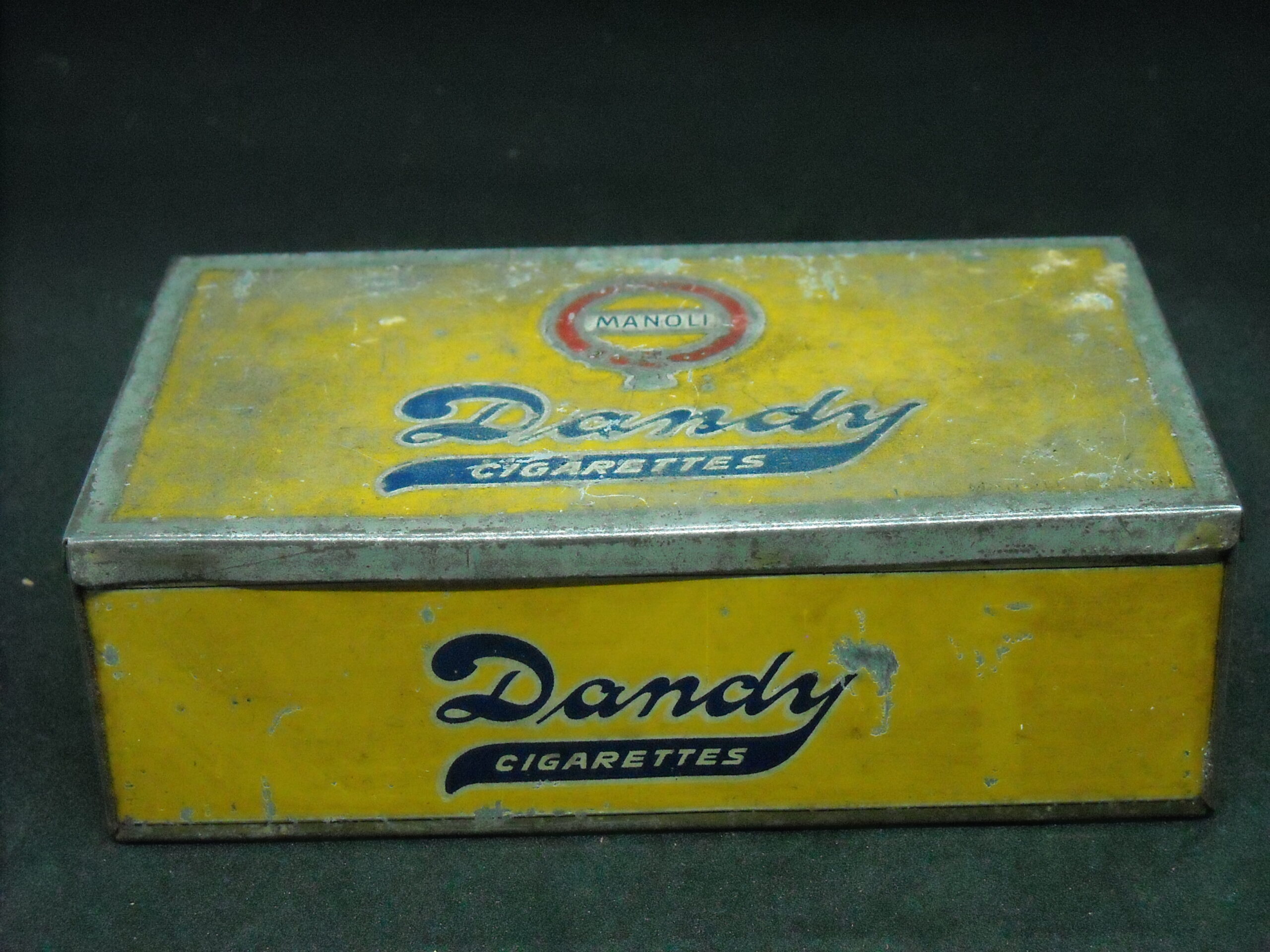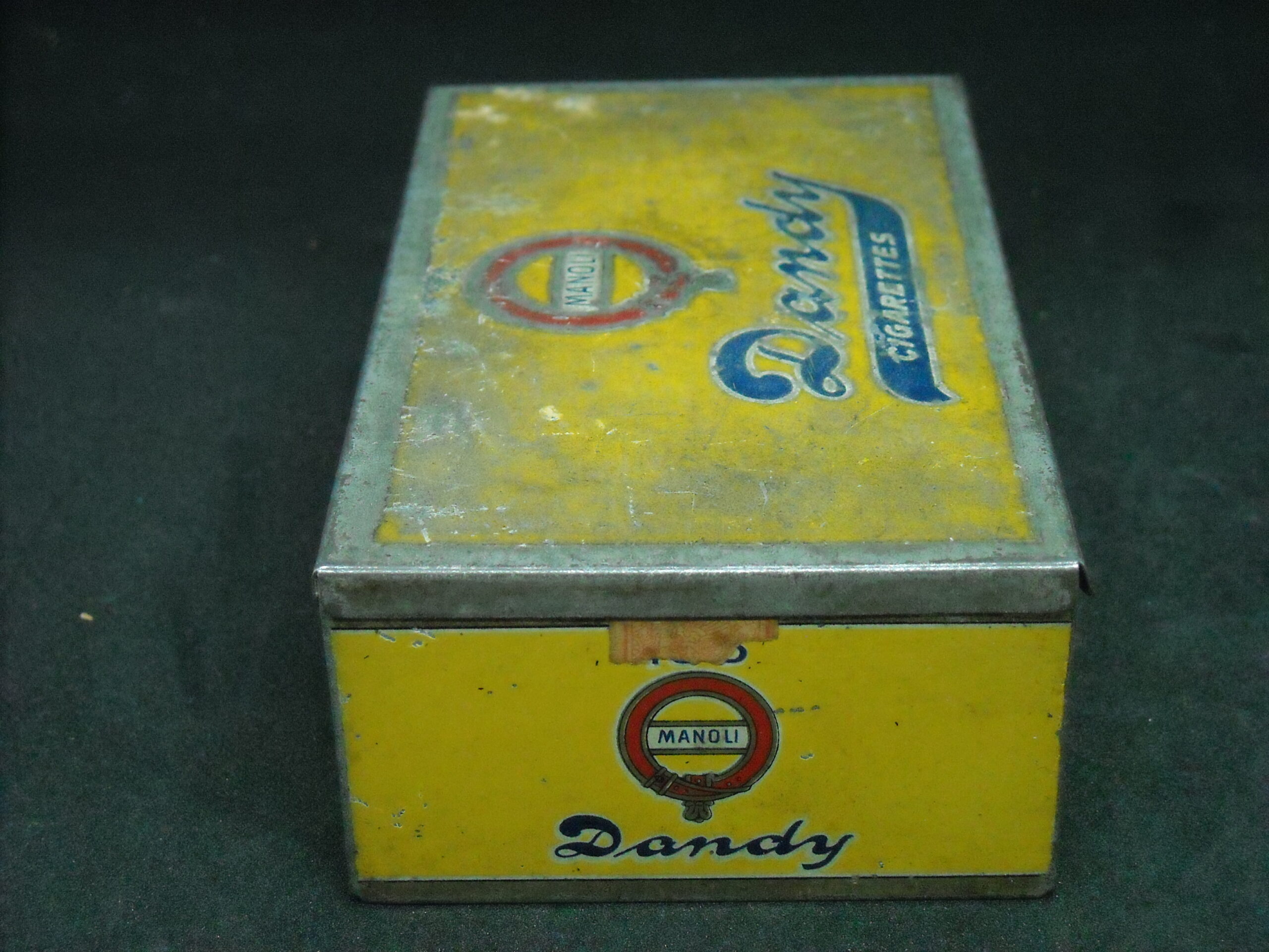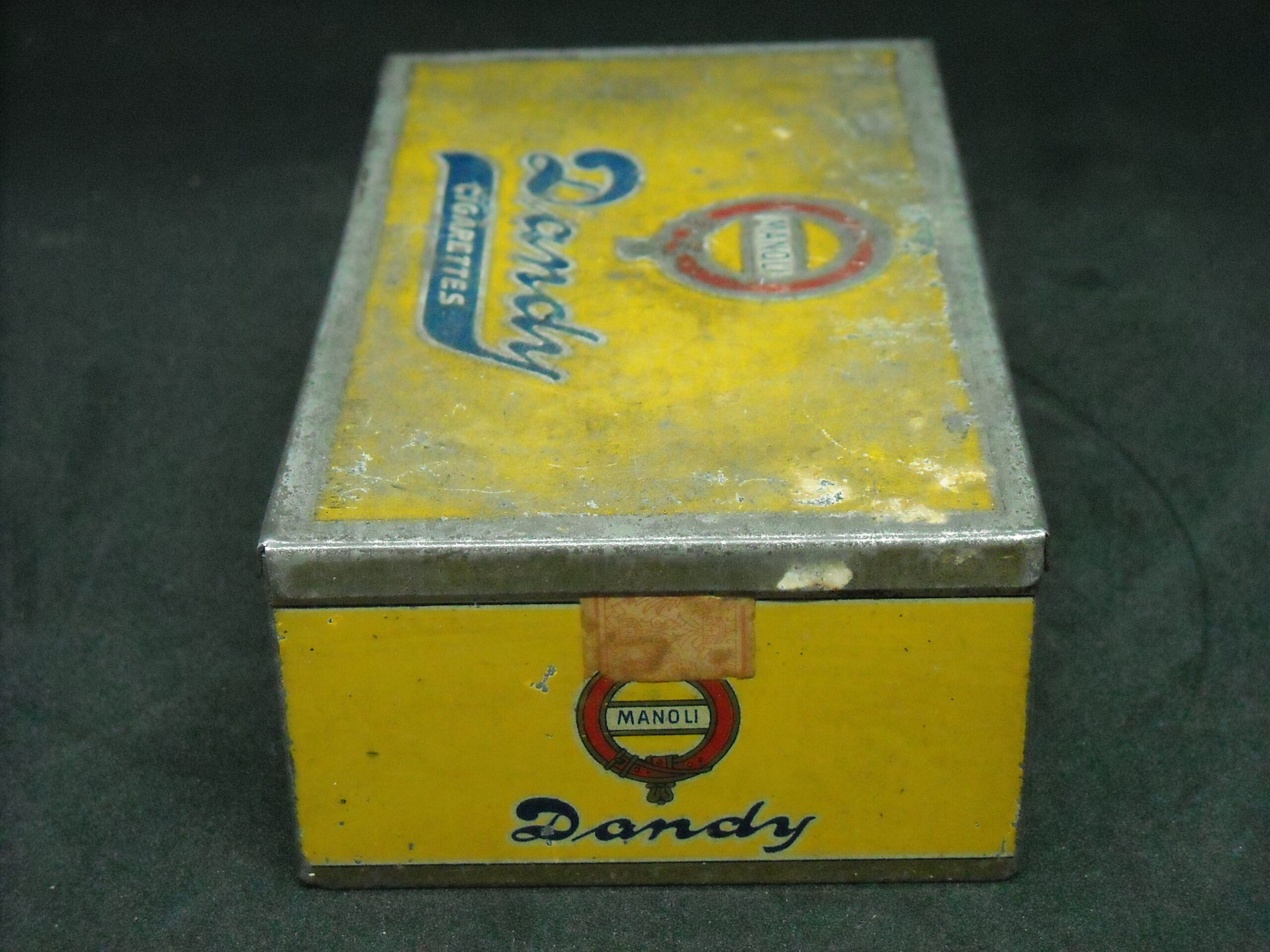 “DANDY CIGARETTES – MANOLI” EUROPEAN TIN CIGARETTE BOX. DIMENSIONS APPROX. (13cm X 7.5cm X 4cm)