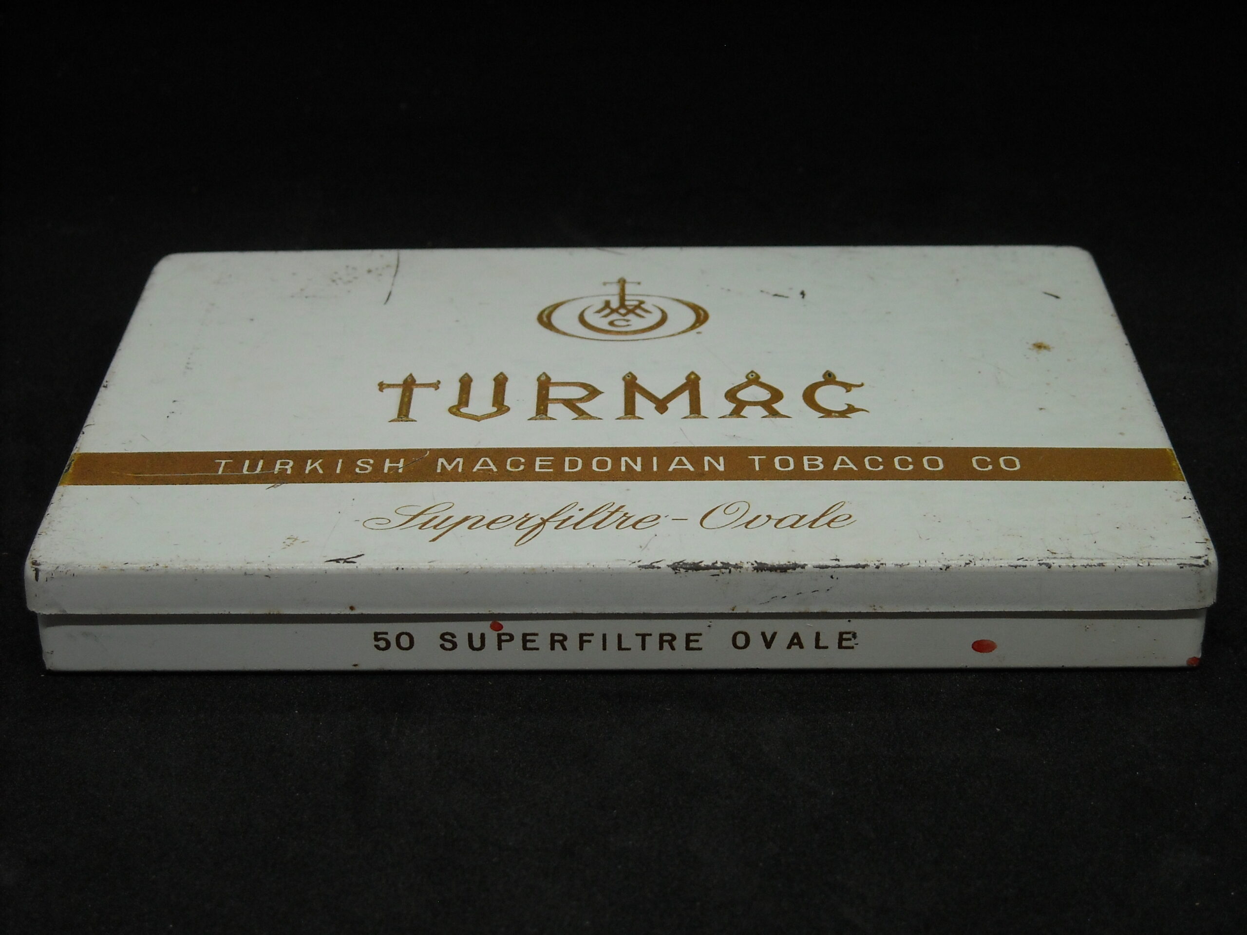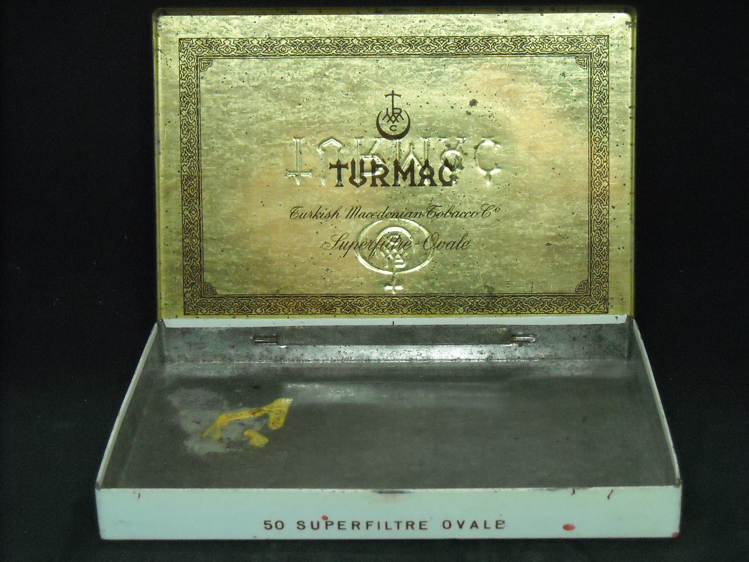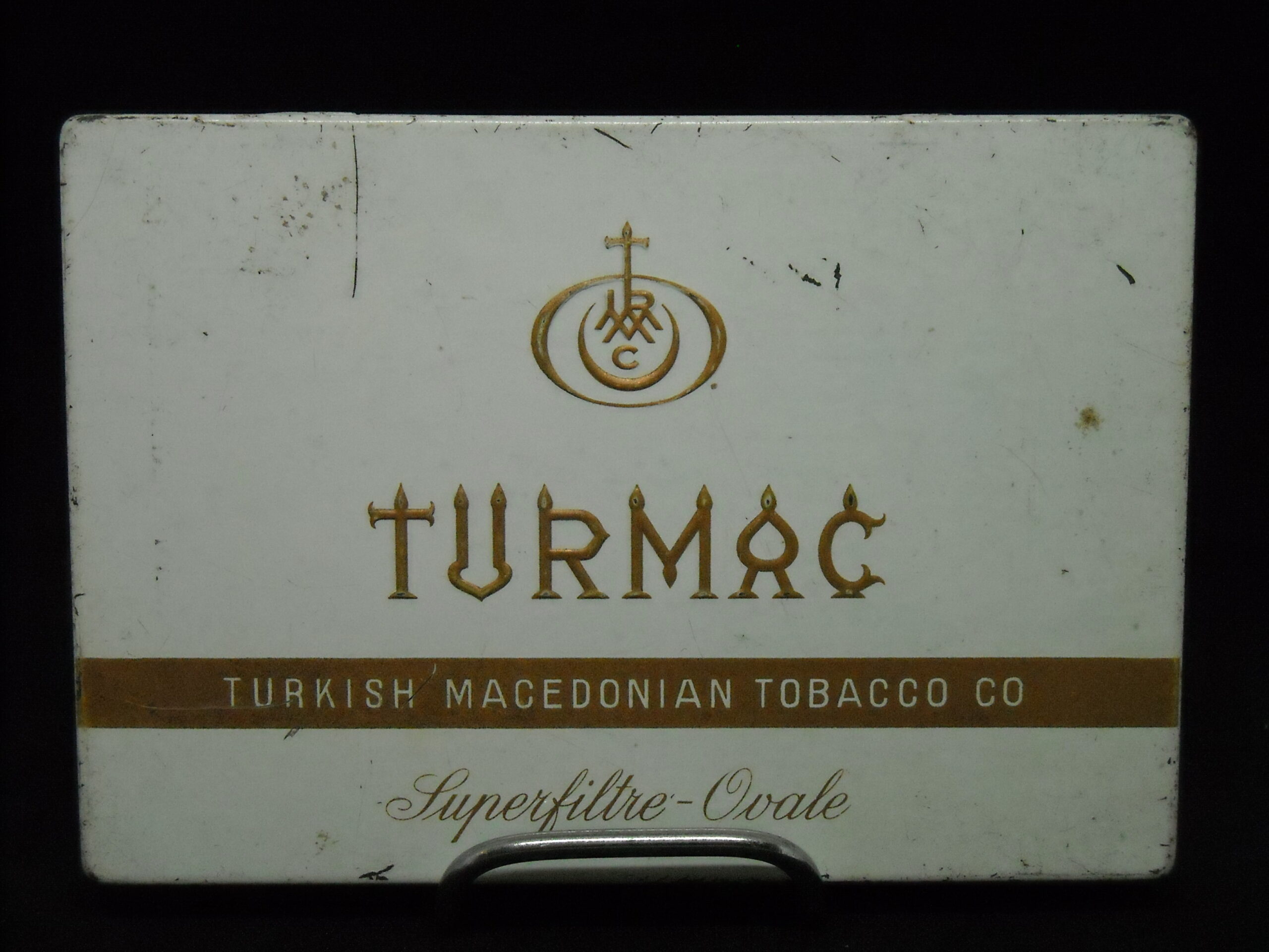 “TURMAC – OVALE” EGYPTIAN TIN CIGARETTE BOX. DIMENSIONS APPROX. (15.5cm X 10.5cm X 2cm)