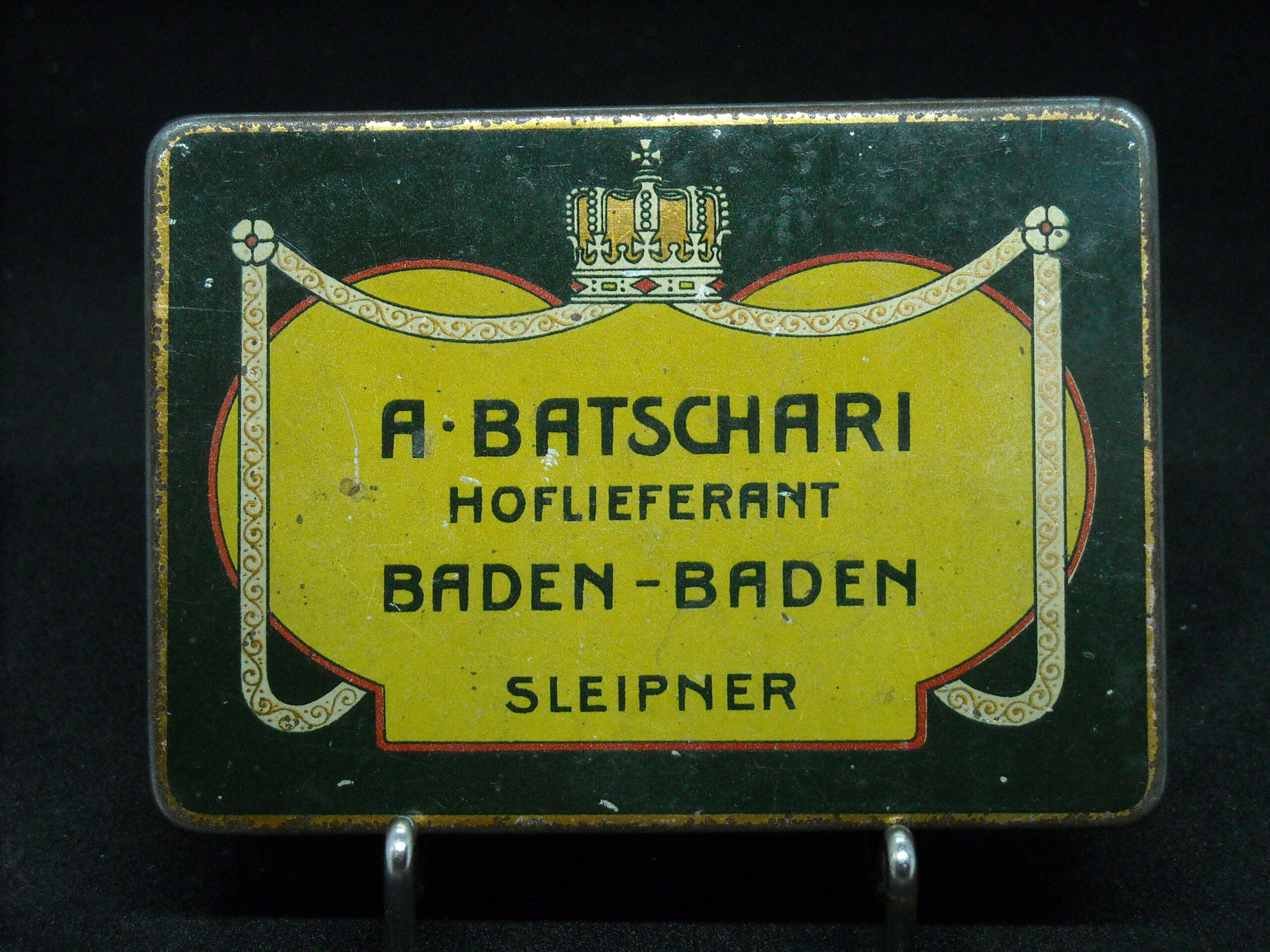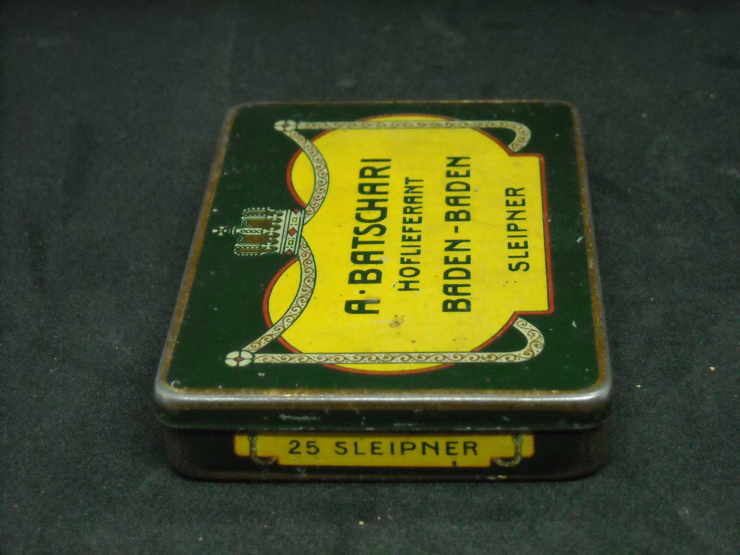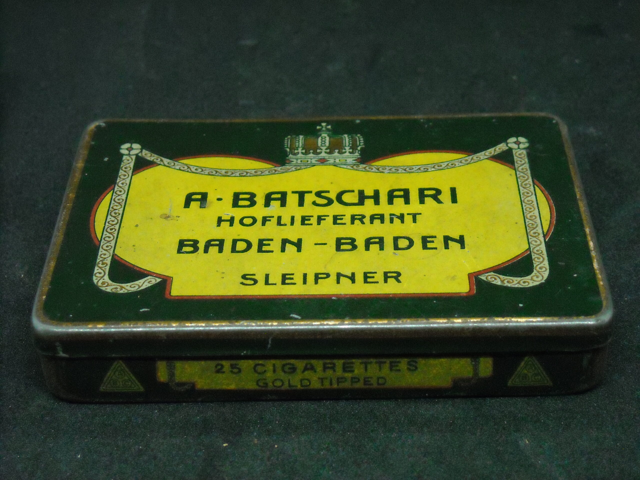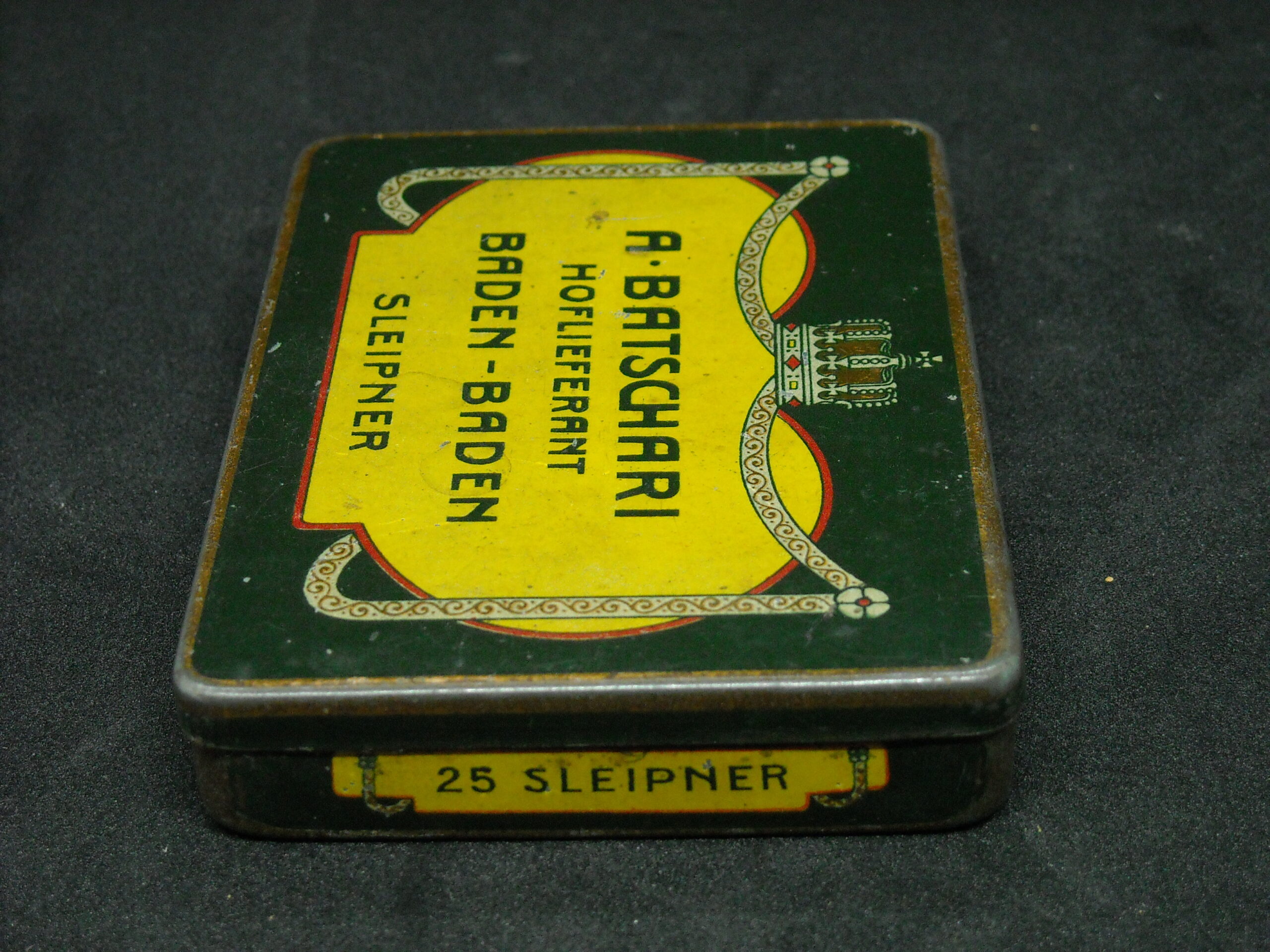 “A. BATSCHARI- SLEIPNER” EUROPEAN TIN CIGARETTE BOX. DIMENSIONS APPROX. (9.5cm X 7cm X 2cm)