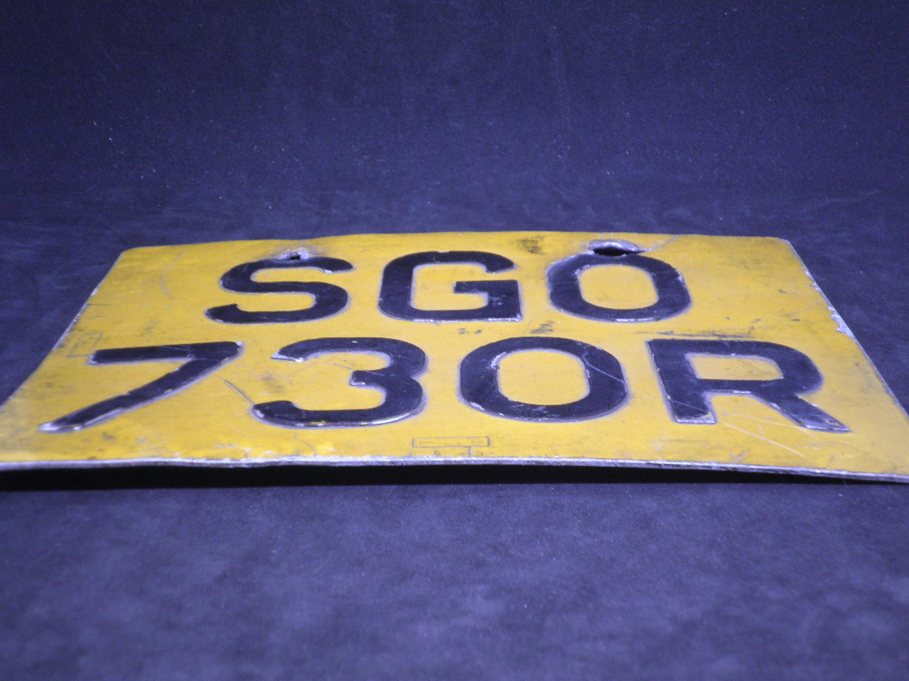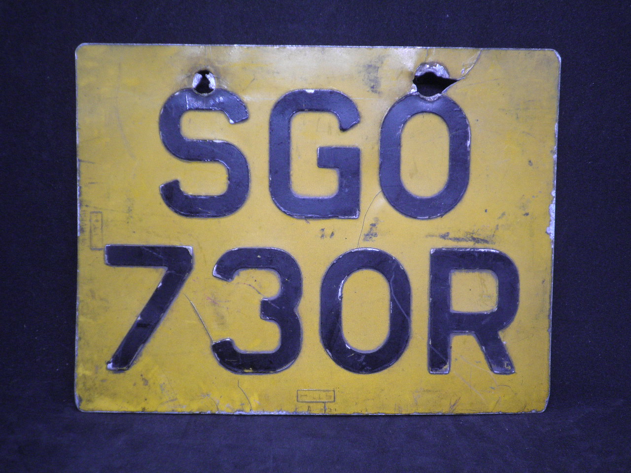 Antique English Yellow Aluminium Motorcycle’s License Plate. Dimensions 24cm X 18.5cm. Sold as is.