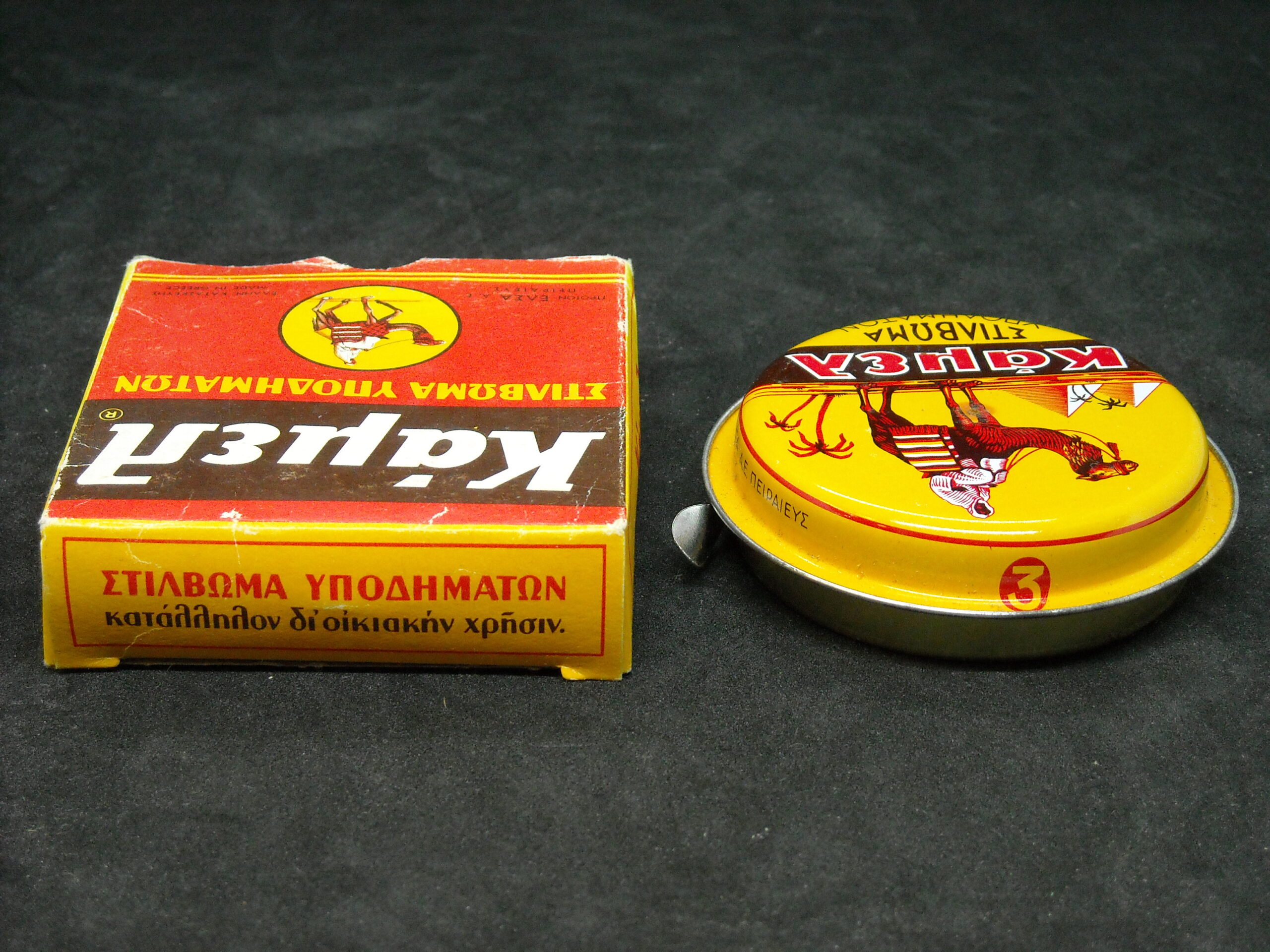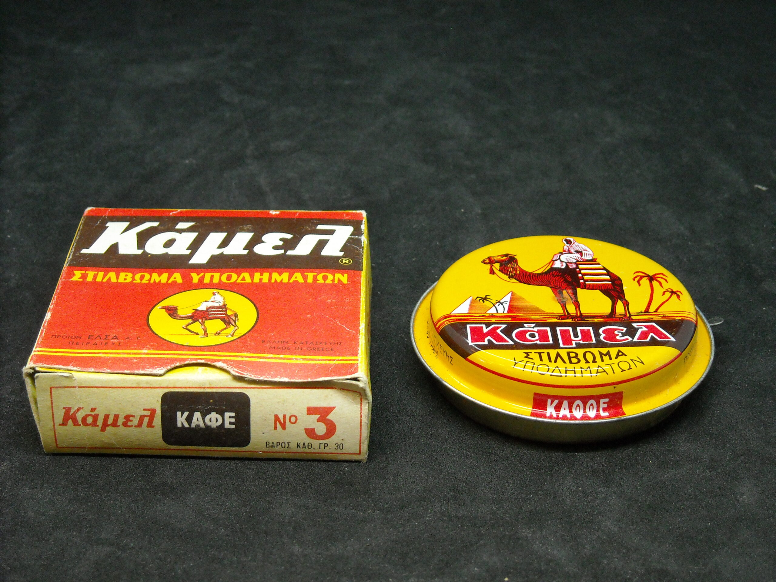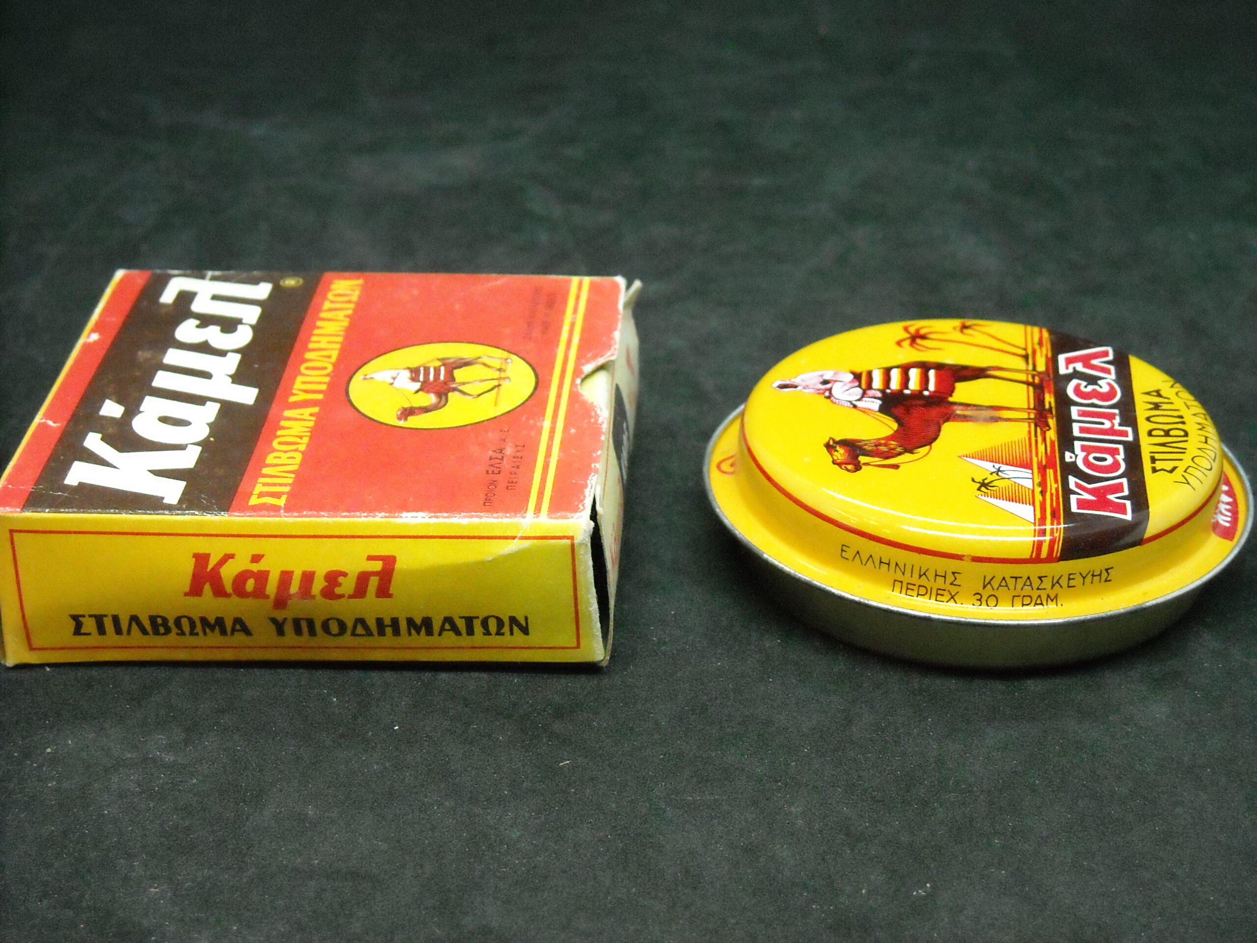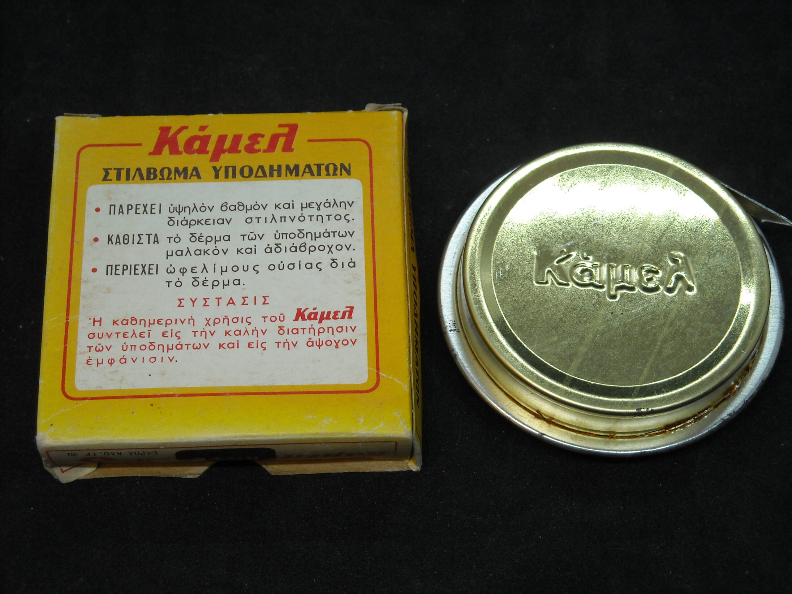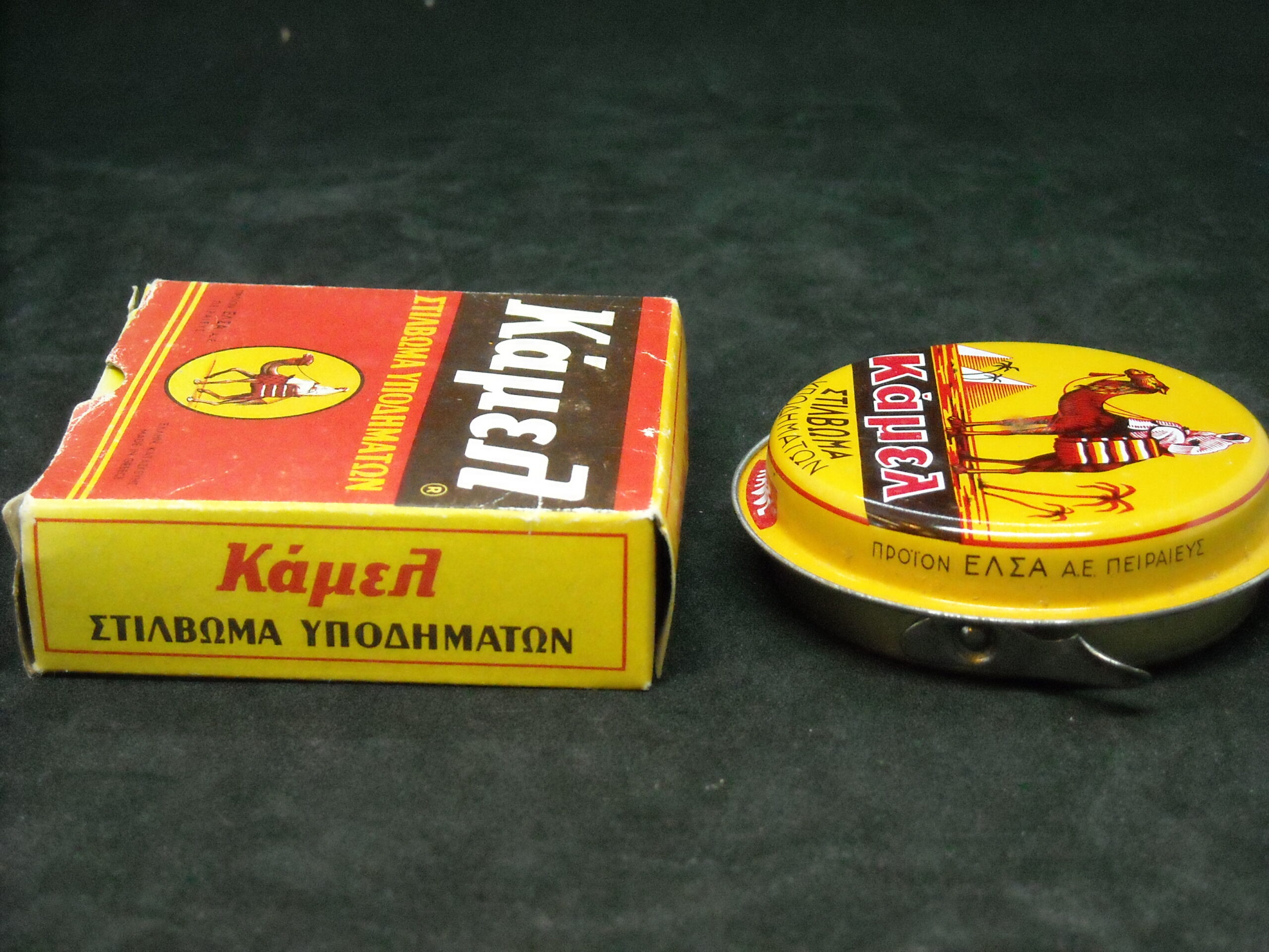 “Camel – SHOES POLISHING” Product of ‘ELSA SA’. Vintage metal box of the well-known company in excellent condition.