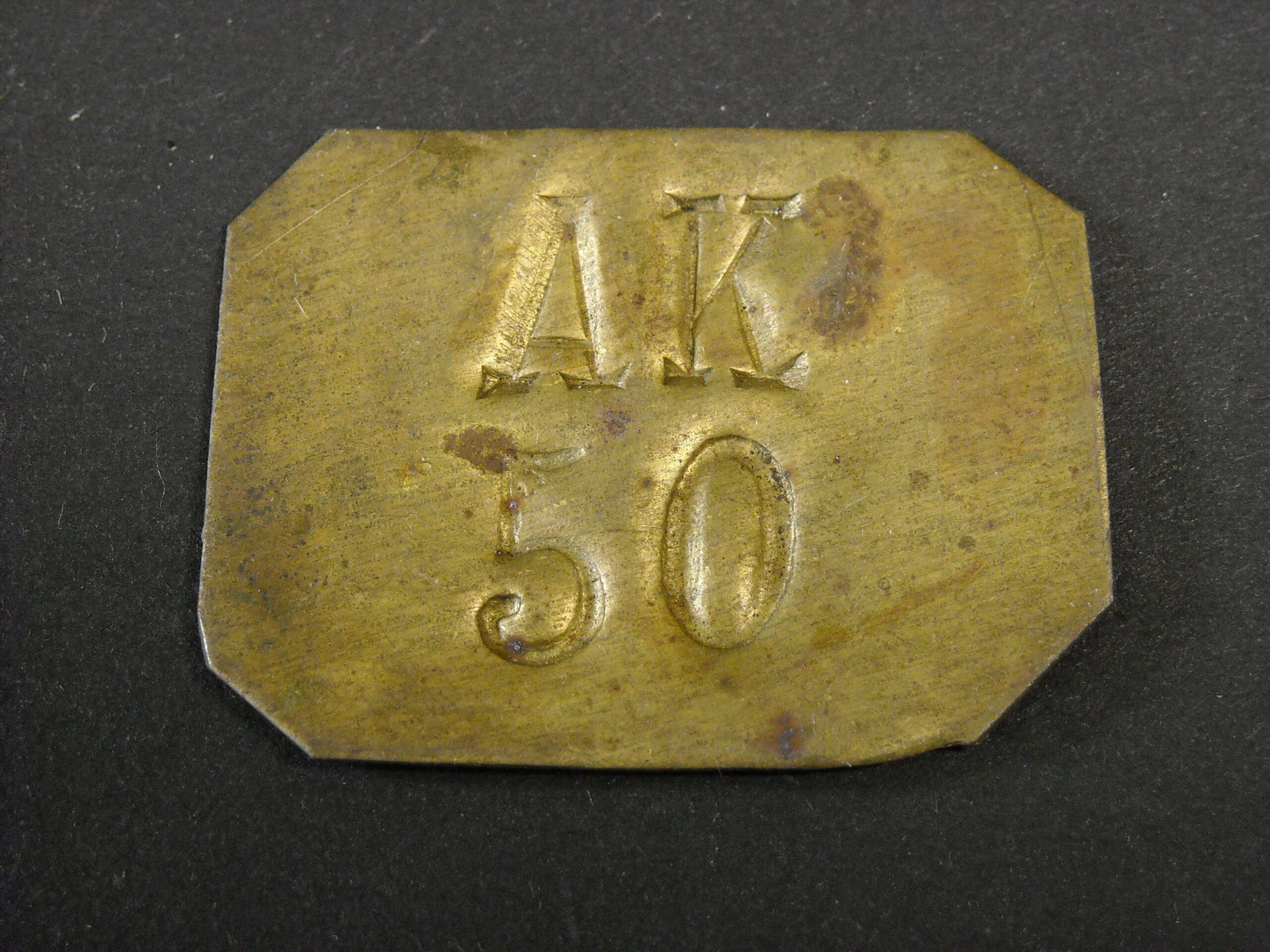 COFFEE TOKEN “AK50” SQUARE SHAPE FROM BRONZE IN GOOD CONDITION.