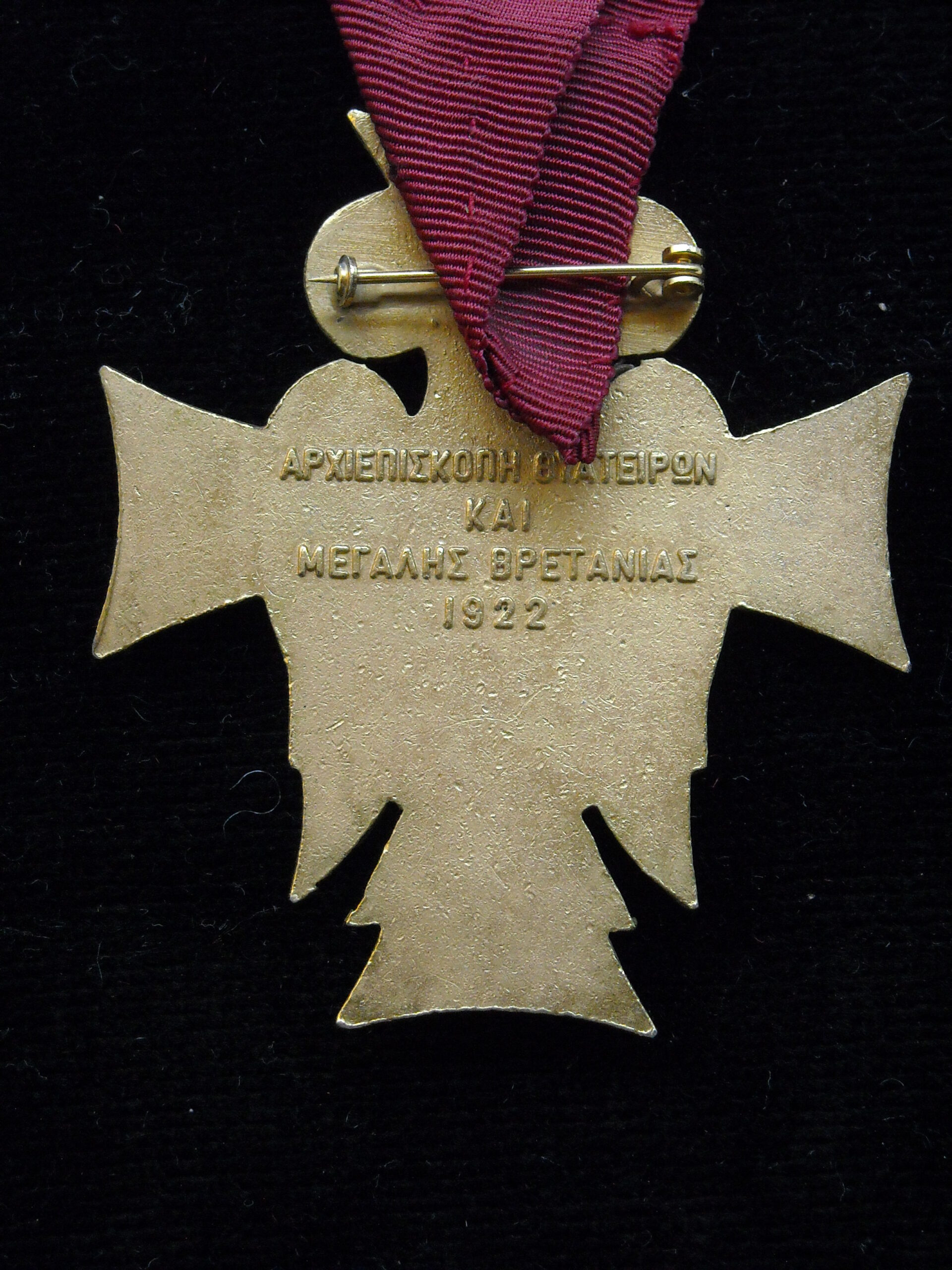 CROSS OF THE ARCHBISHOP OF THYATERA AND GREAT BRITAIN 1922 WITH RIBBON.