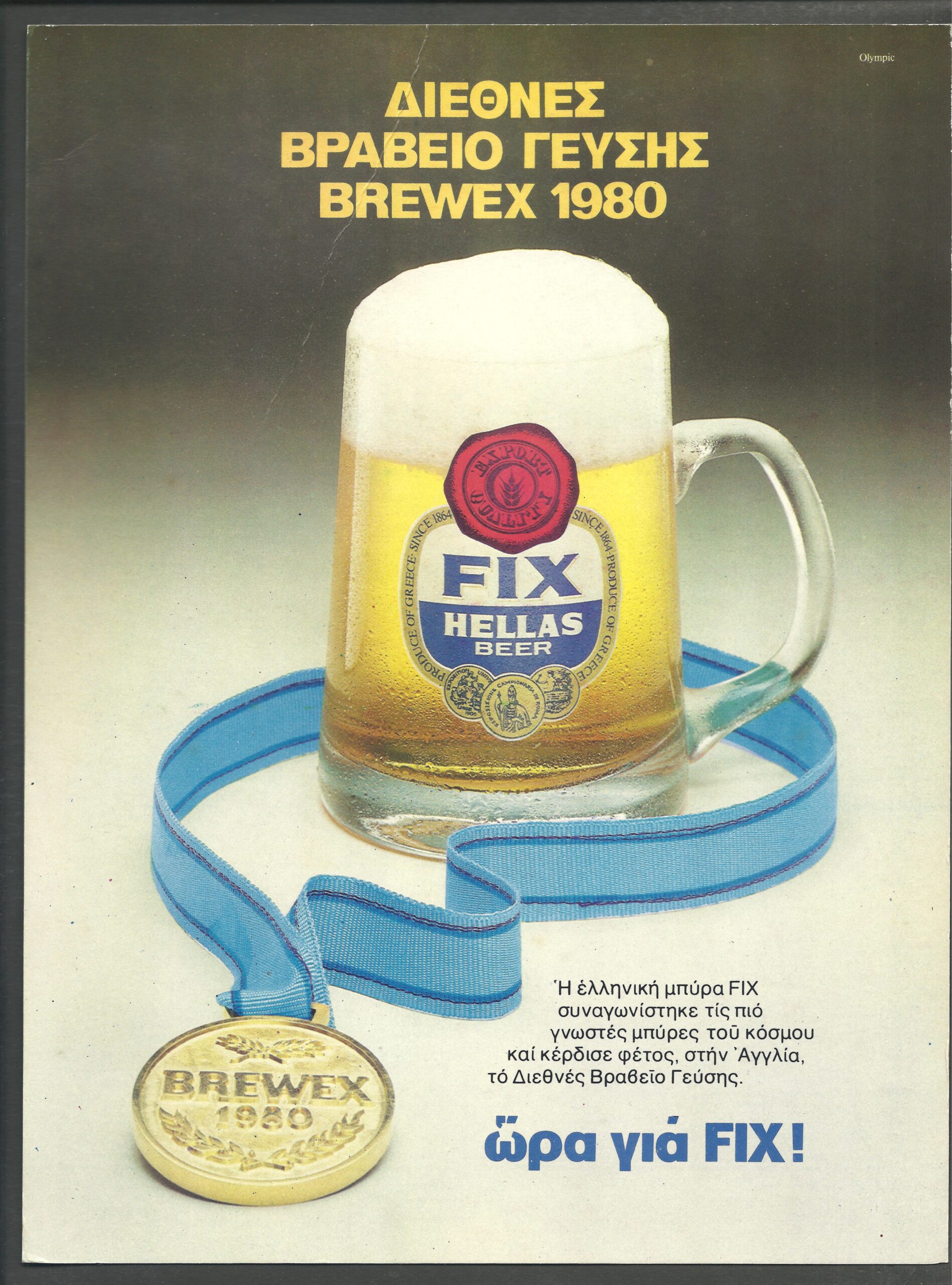 “FIX HELLAS BEER” SMALL POSTER ON THIN CARDBOARD 1980 IN GOOD CONDITION.