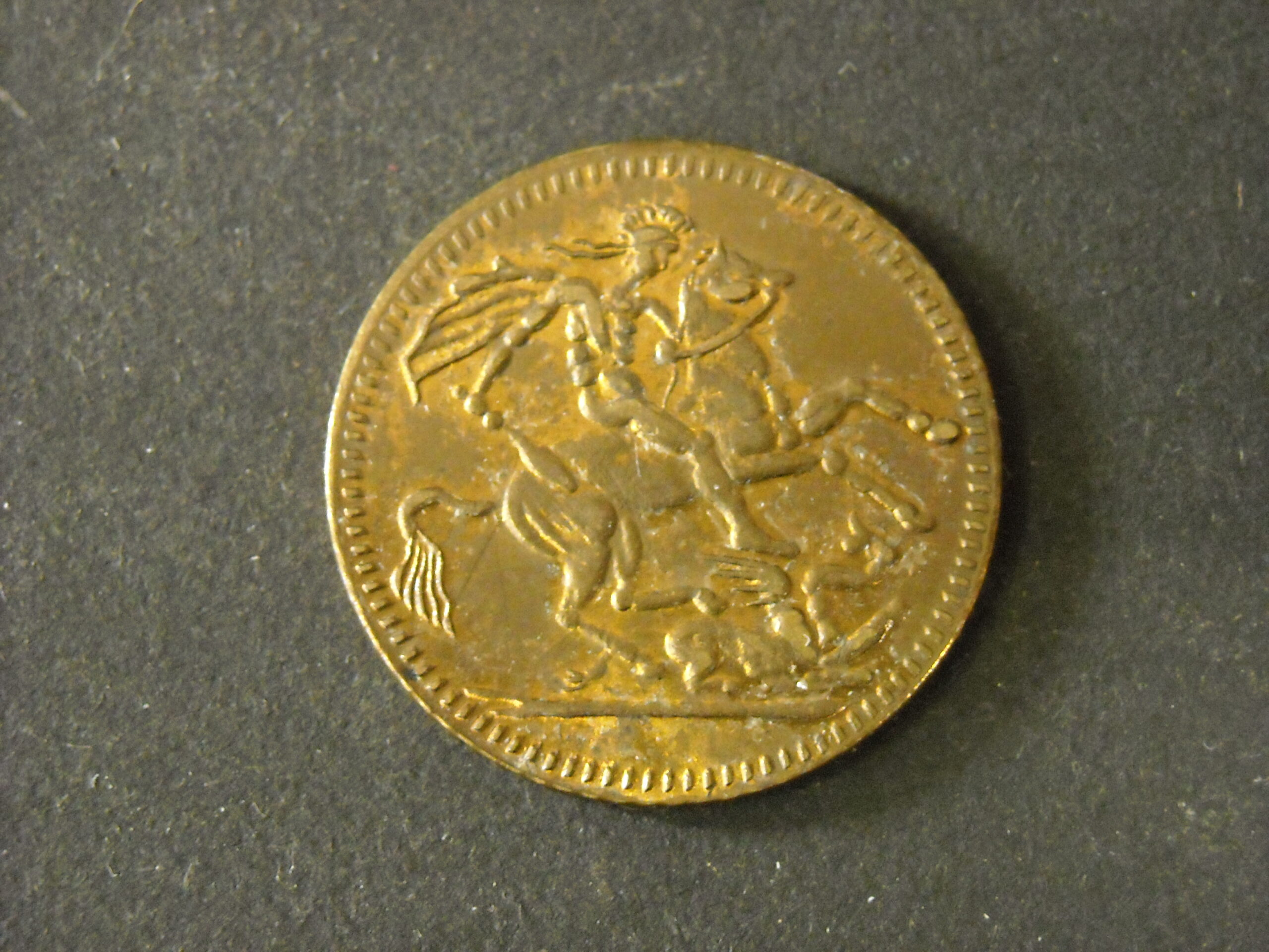 NEW YEAR TOKEN “SOUVENIR FROM NEW YEAR CAKE 1968” SOVEREIGN IMITATION IN COPPER.