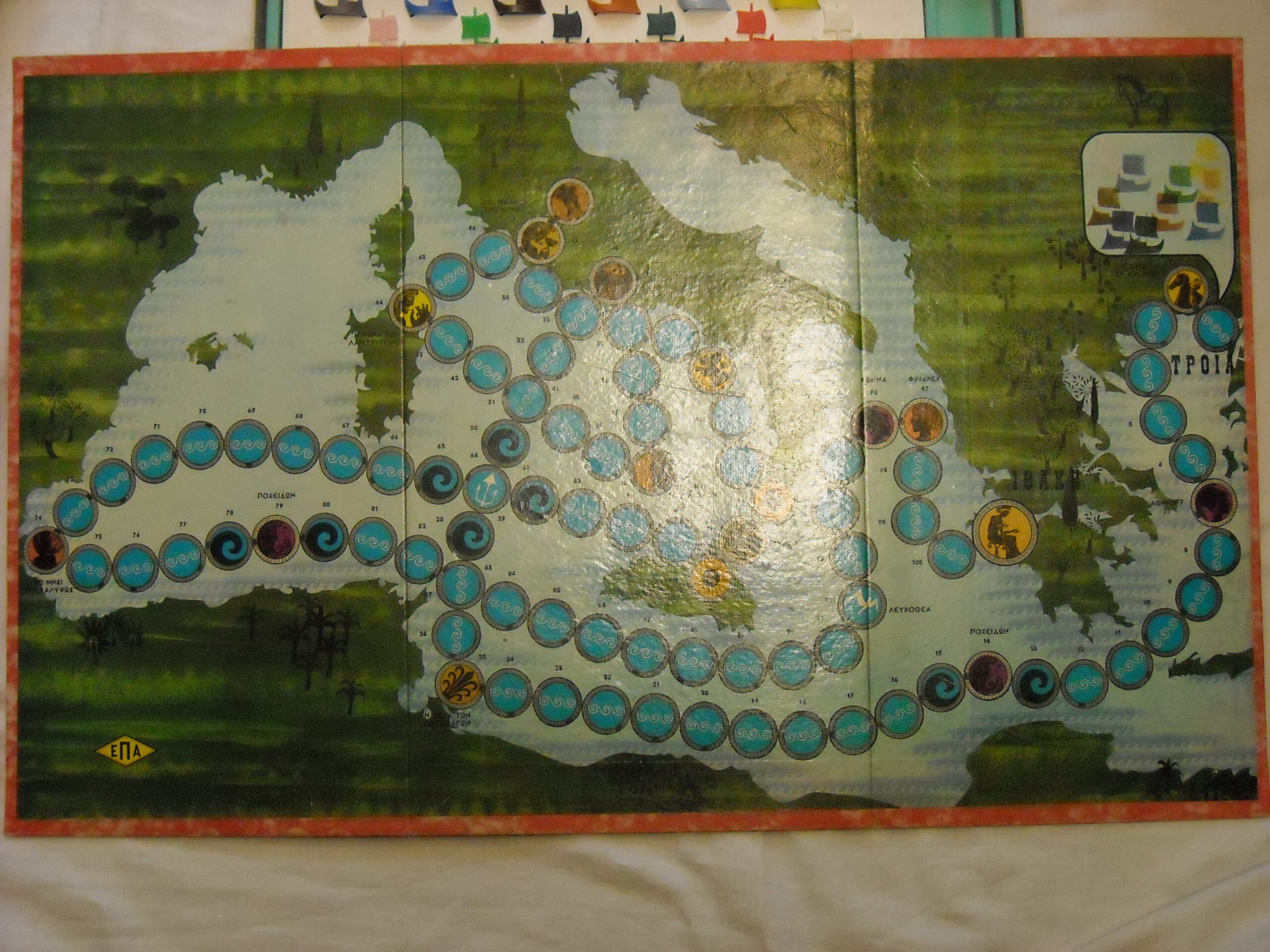 "ODYSSEIA" Cardboard game of the ΄60 of the company EPA in excellent condition with all pawns without damage together with the book containing the instructions and a lot of historical information.