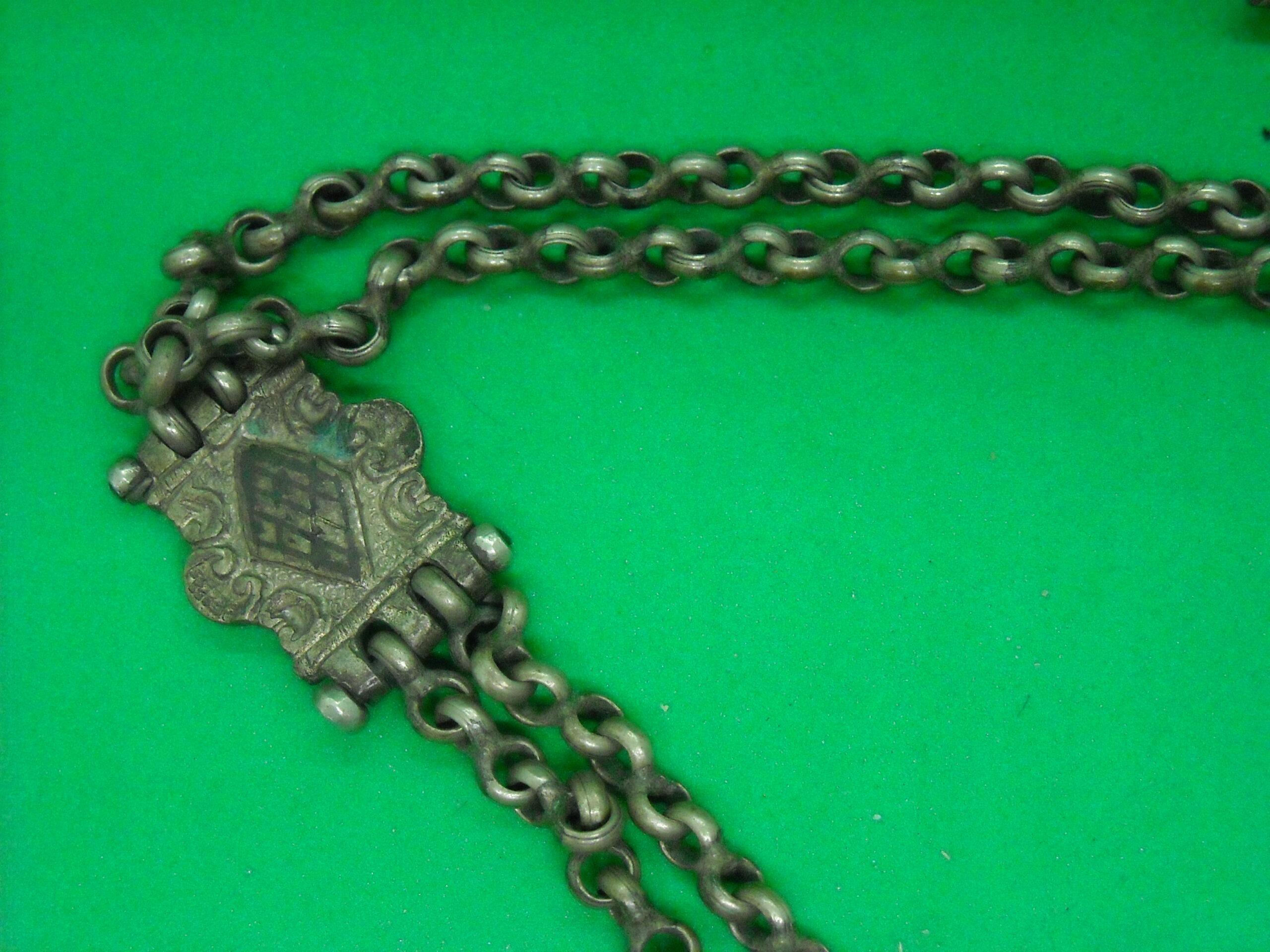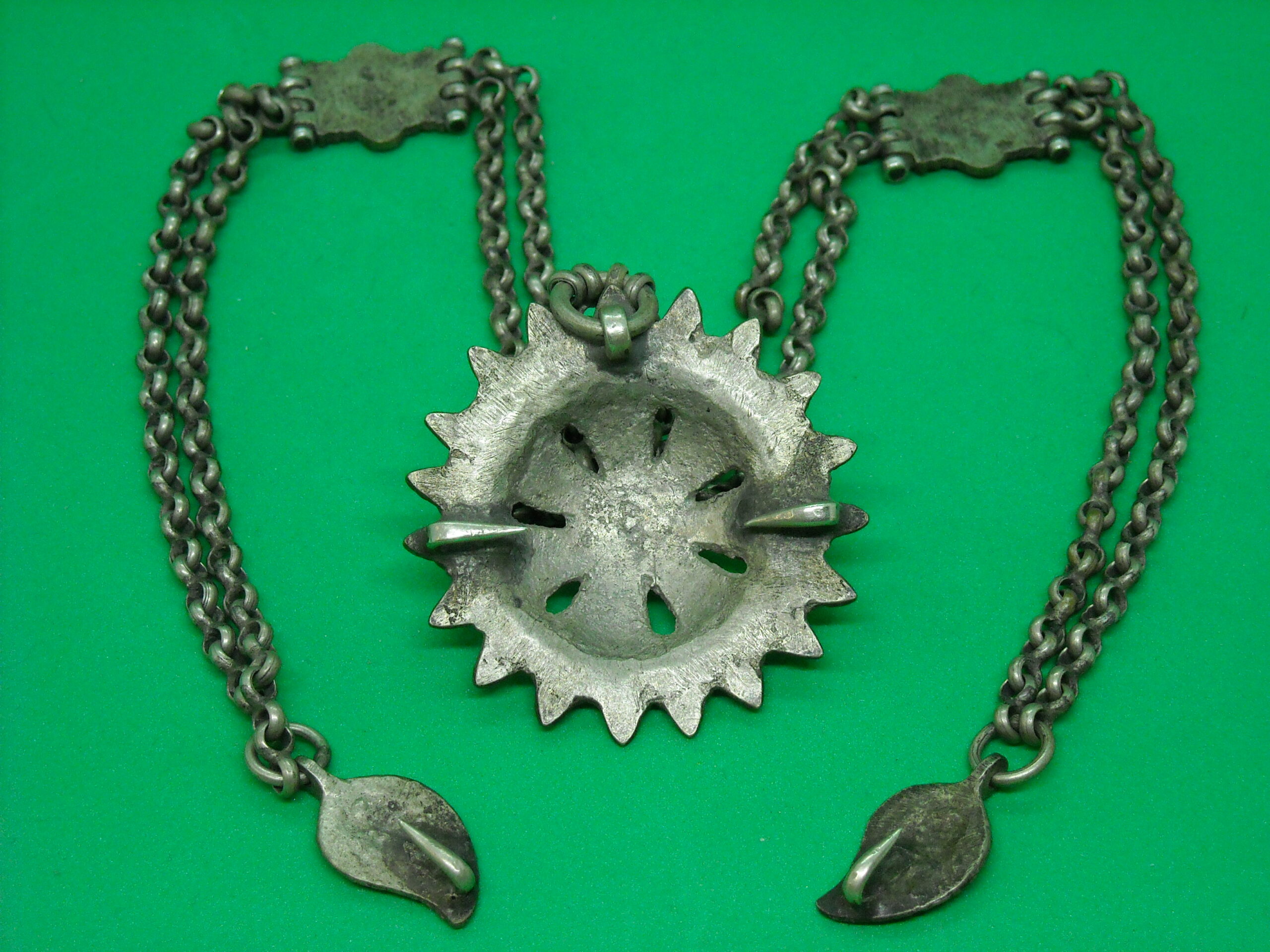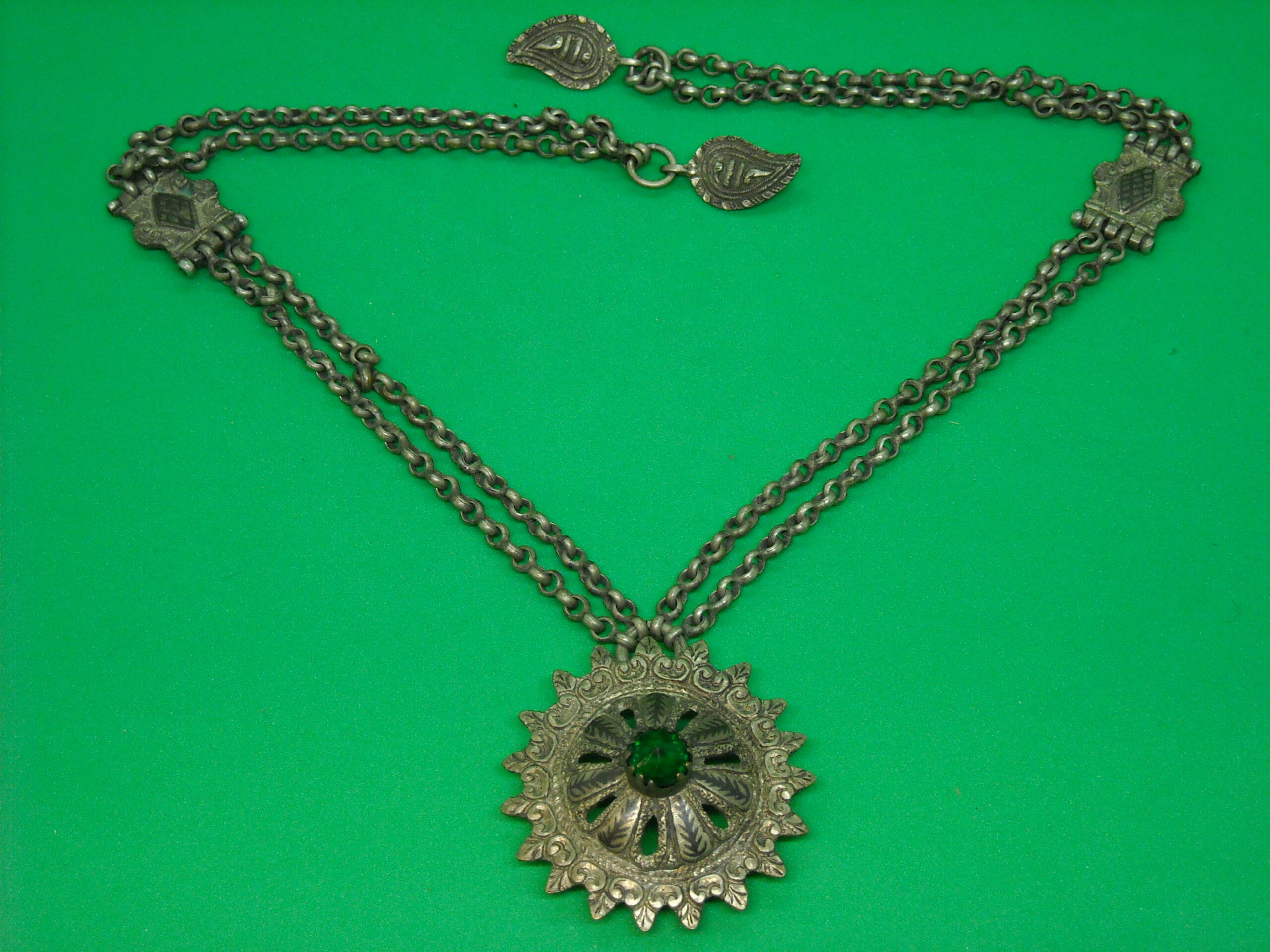 OLD TRADITIONAL PENDANT WITH GREEN STONE AND NIELLO IN EXCELLENT QUALITY.