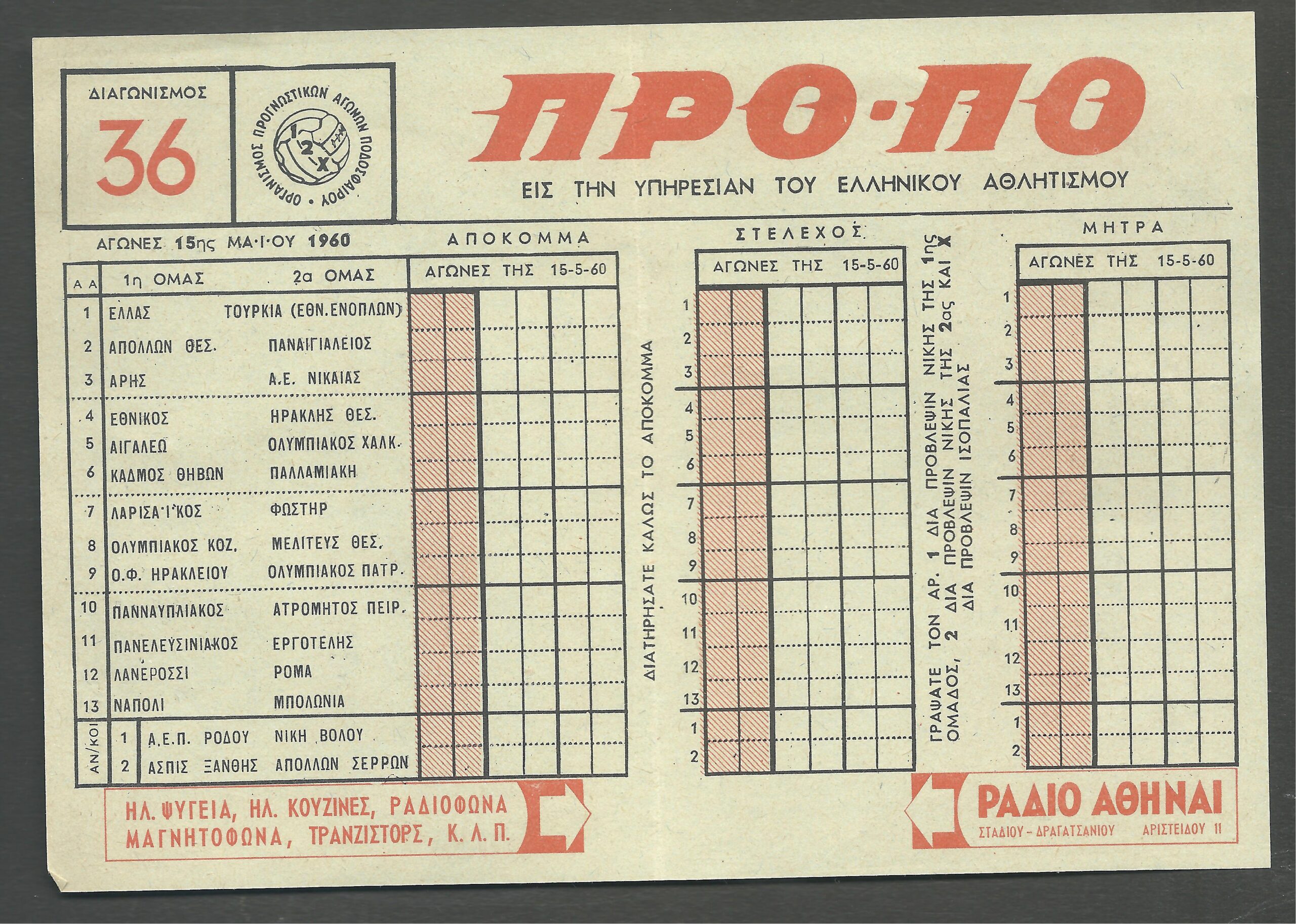 “PRO-PO” COUPON 15/05/1960 36th COMPETITION.