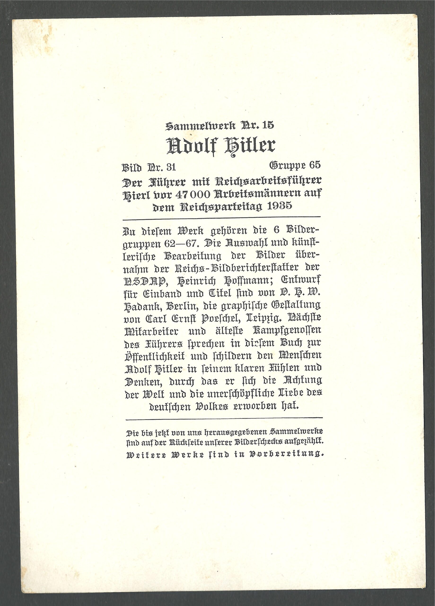 PROPAGANDA LARGE WW2 FOTO WITH HITLER No31. GENUINE IN GOOD CONDITION. WEAR ON THE RIGHT CORNER.