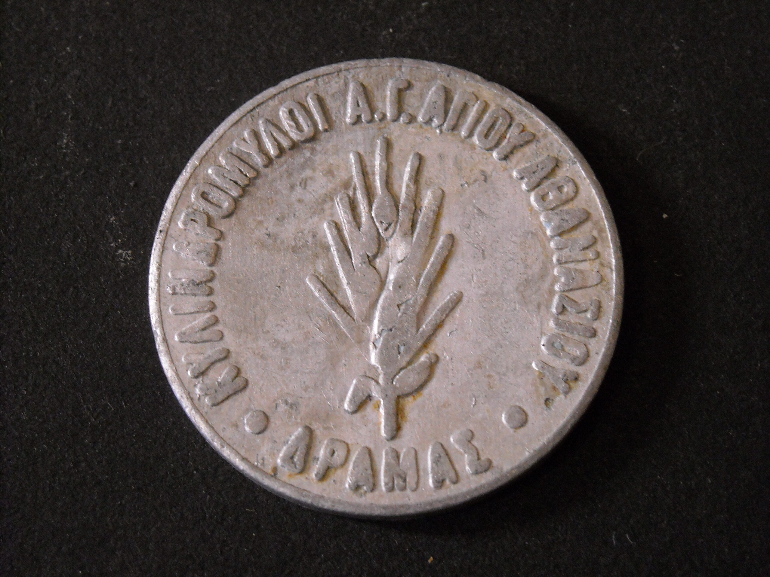 TOKEN 1kg BREAD “AGIOU ATHANASIOU MILLS DRAMA” FROM ALUMINIUM IN GOOD CONDITION.