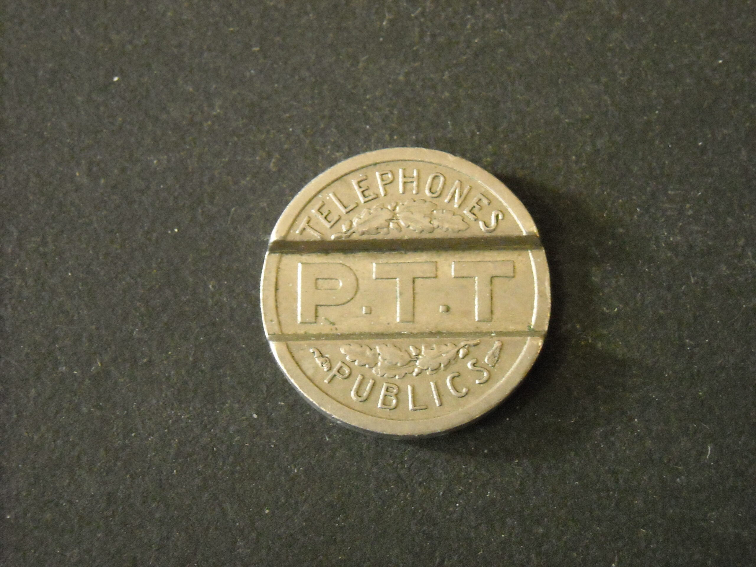 1937 FRENCH TELEPHONE TOKEN “TELEPHONES PUBLICS P.T.T.” FROM NICKEL.