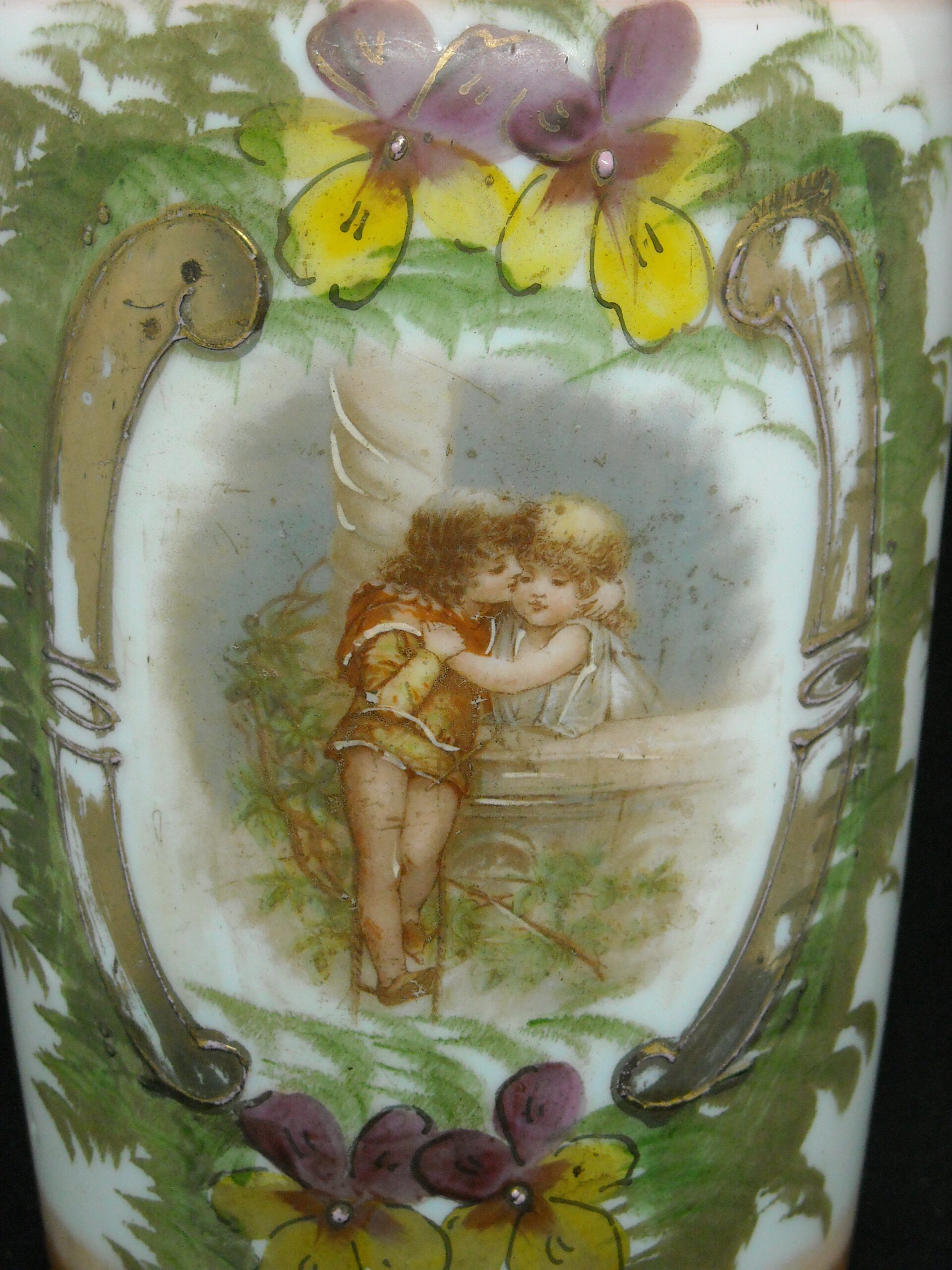 VASE WITH LOVERS IN WHITE OPALINE. LATE 19th BEGINNING OF THE 20th CENTURY IN EXCELLENT CONDITION.