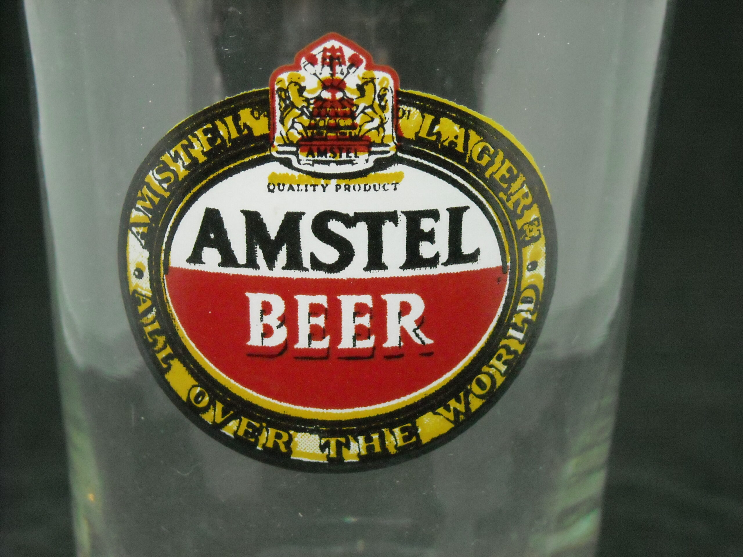 Vintage advertising glass "AMSTEL BEER" in excellent condition, glass height 13cm with a ghost in the print.