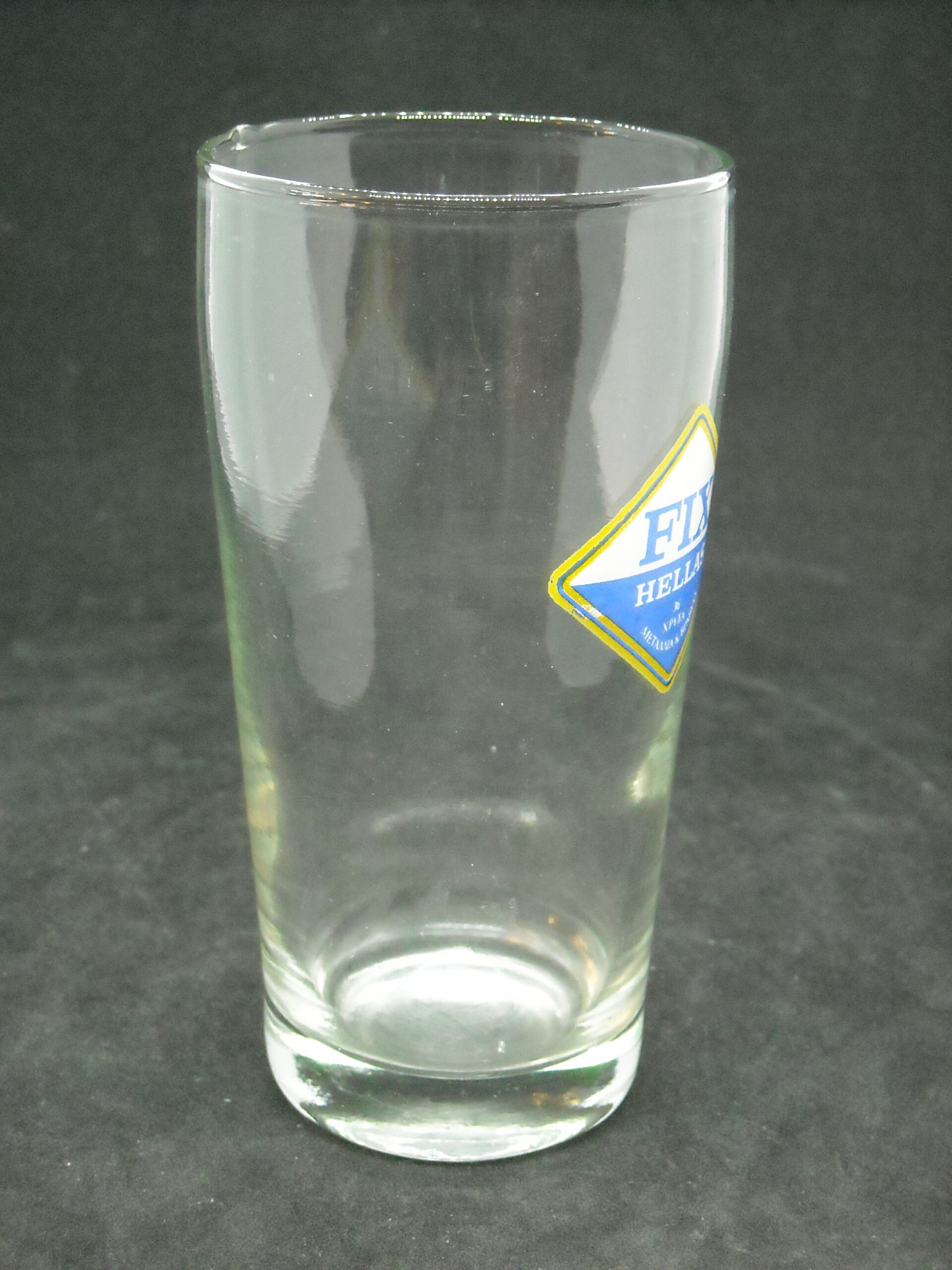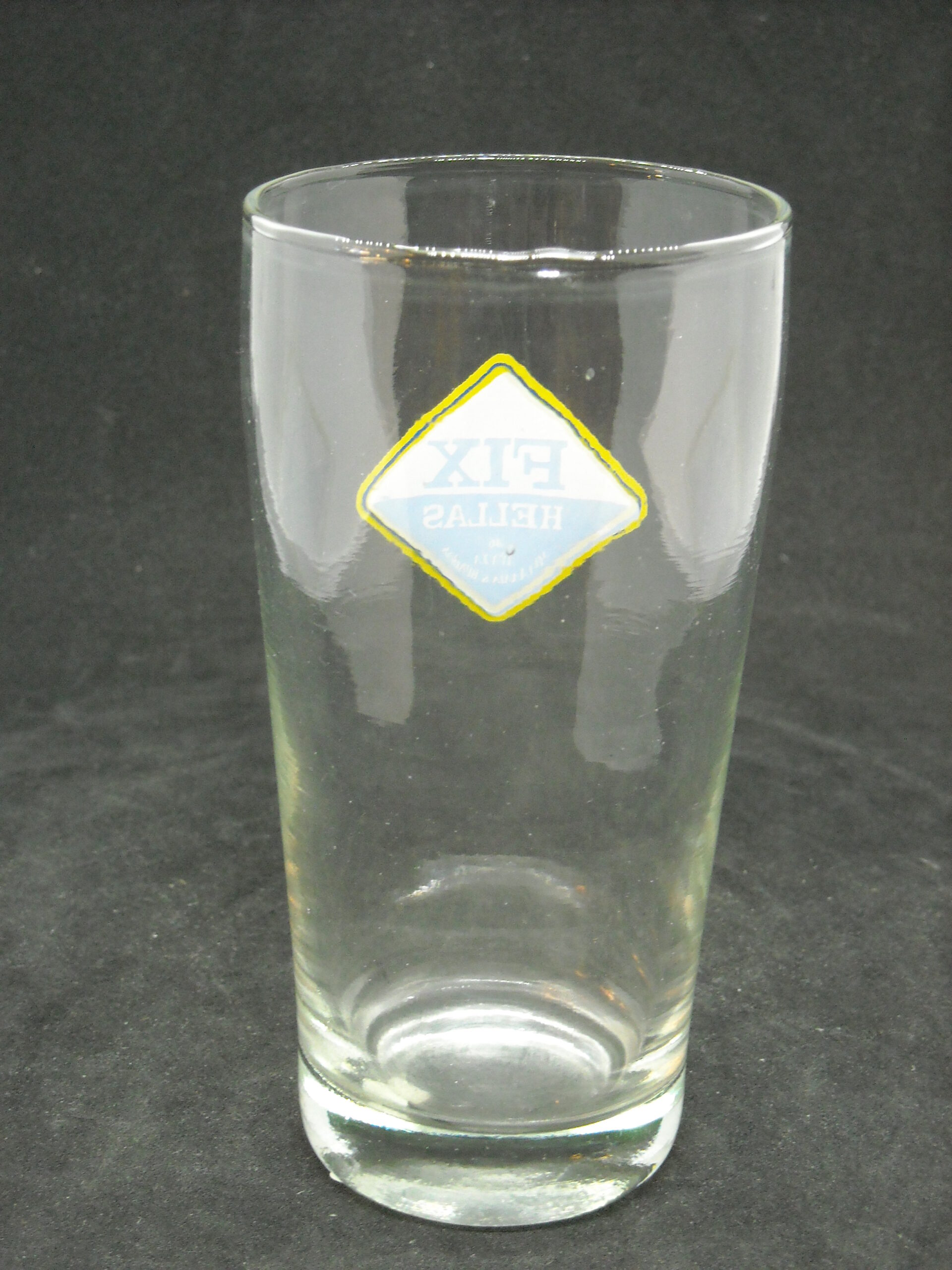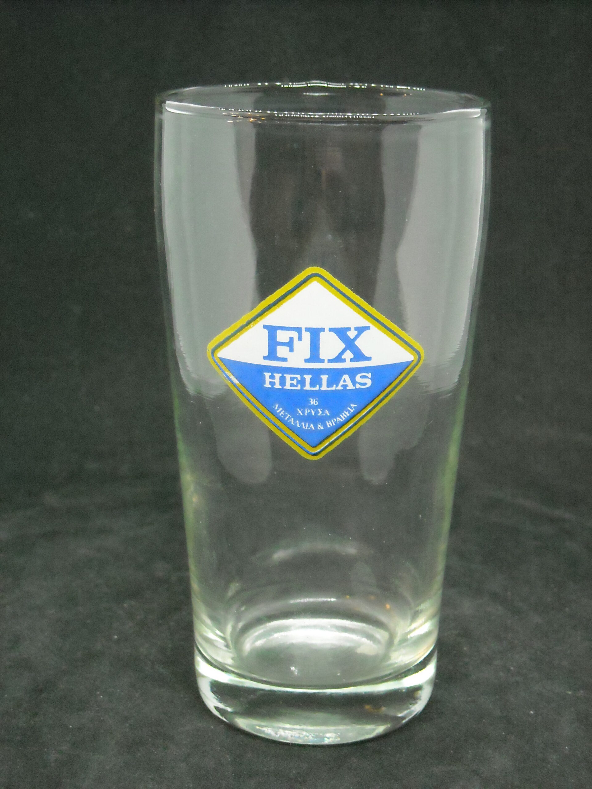 Vintage glass advertising glass "FIX HELLAS" in blue color in excellent condition, glass height 13cm.