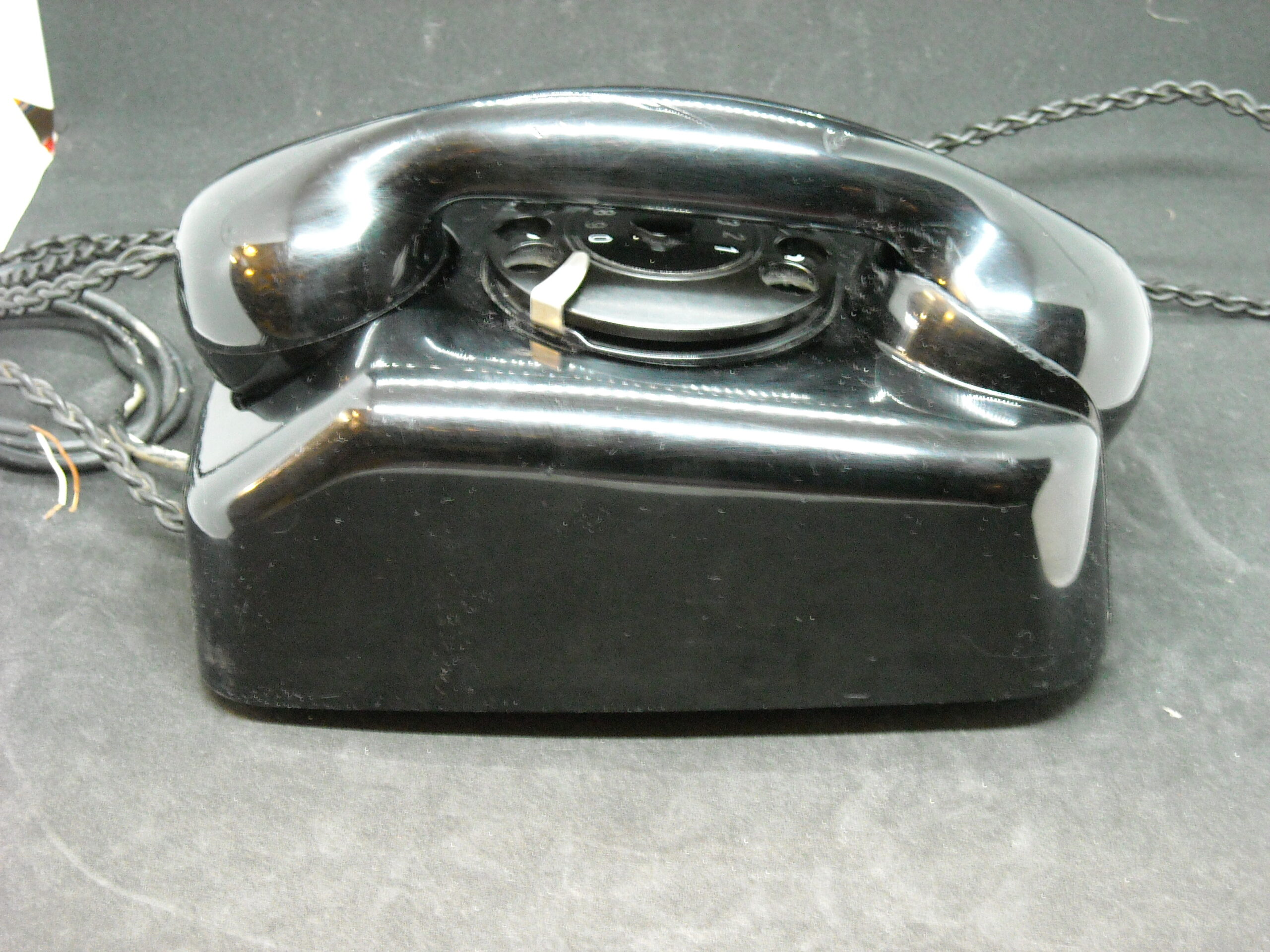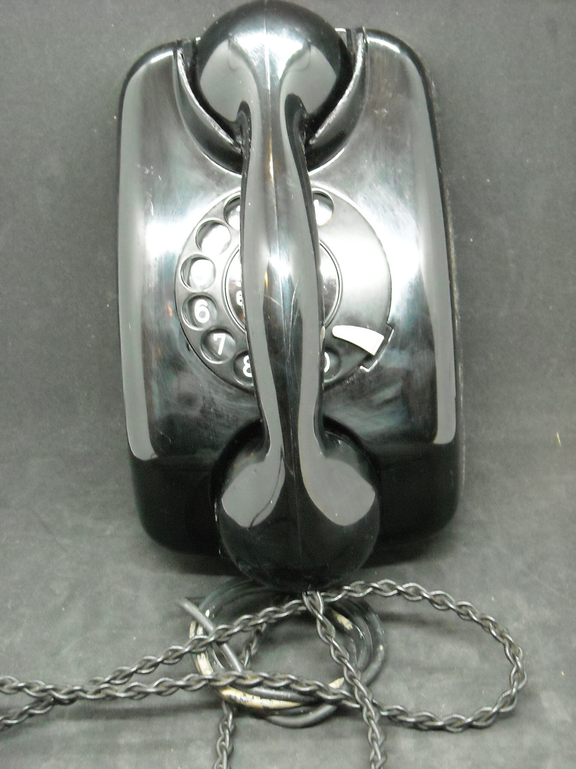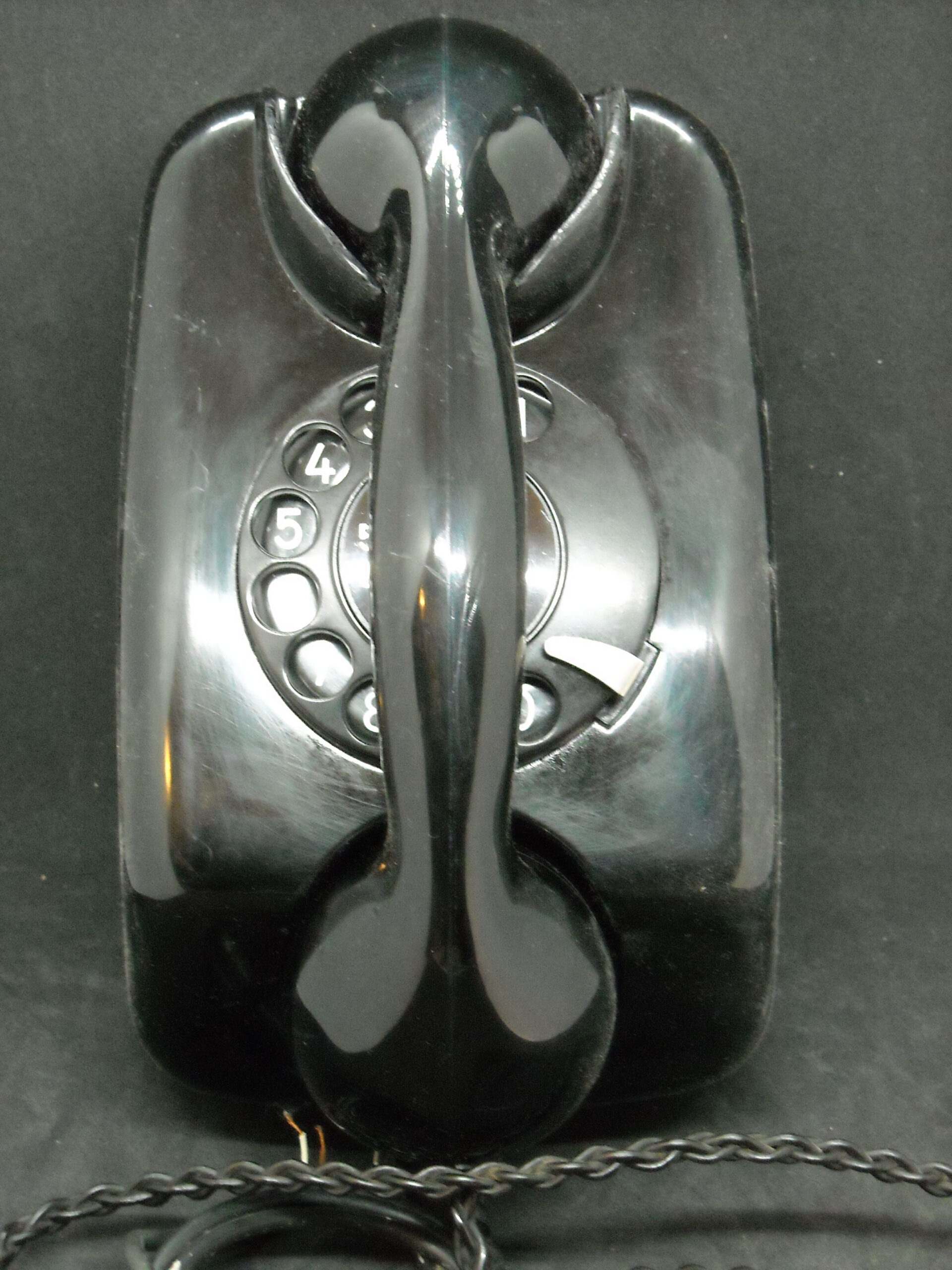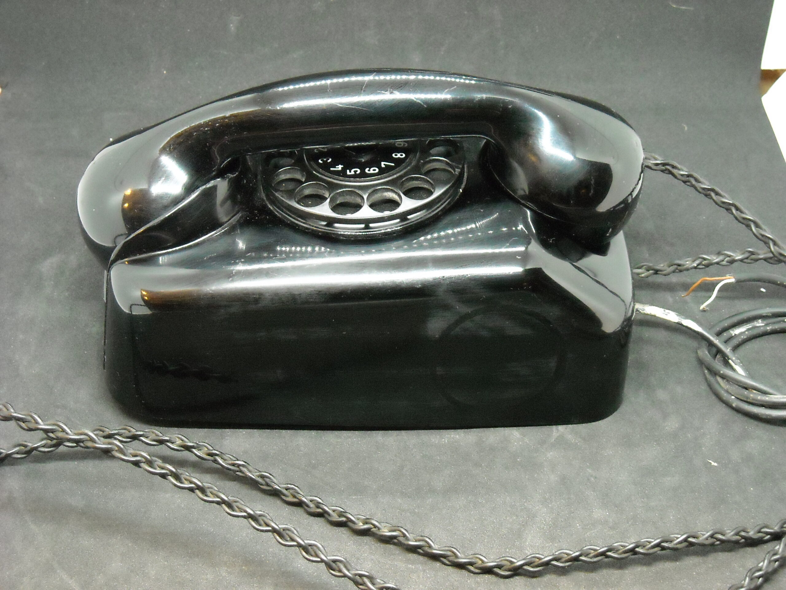 Vintage wall telephone "SIEMENS" in black functional with wear. Dimensions: 13cm deep X 14.5cm wide X 22cm high.