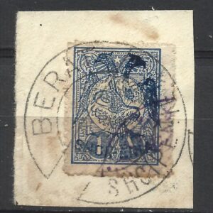 ΑΛΒΑΝΙΑ 1913 Επισήμανση “SHQIPENIA” σε Τούρκικο Γραμ/μο 20pa(Yv5) σφραγισμένο σε χαρτί.