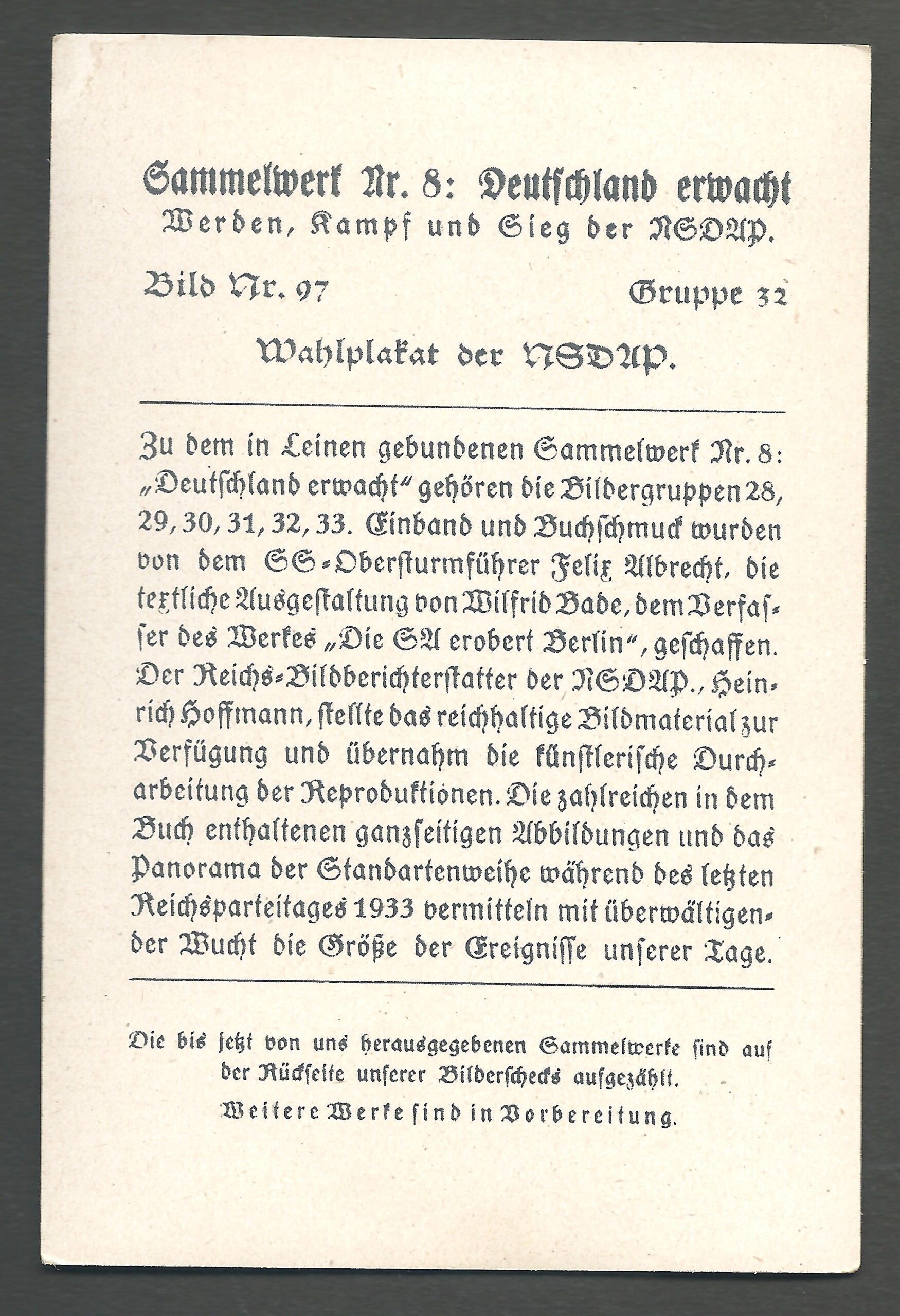 ΠΡΟΠΑΓΑΝΔΙΣΤΙΚΗ ΜΙΚΡΗ ΦΩΤΟ ΑΠΟ ΑΦΙΣΑ Β’Π.Π. ΤΟΥ NSDAP ΓΝΗΣΙΑ ΕΠΟΧΗΣ. ΣΕ ΕΞΑΙΡΕΤΙΚΗ ΚΑΤΑΣΤΑΣΗ.