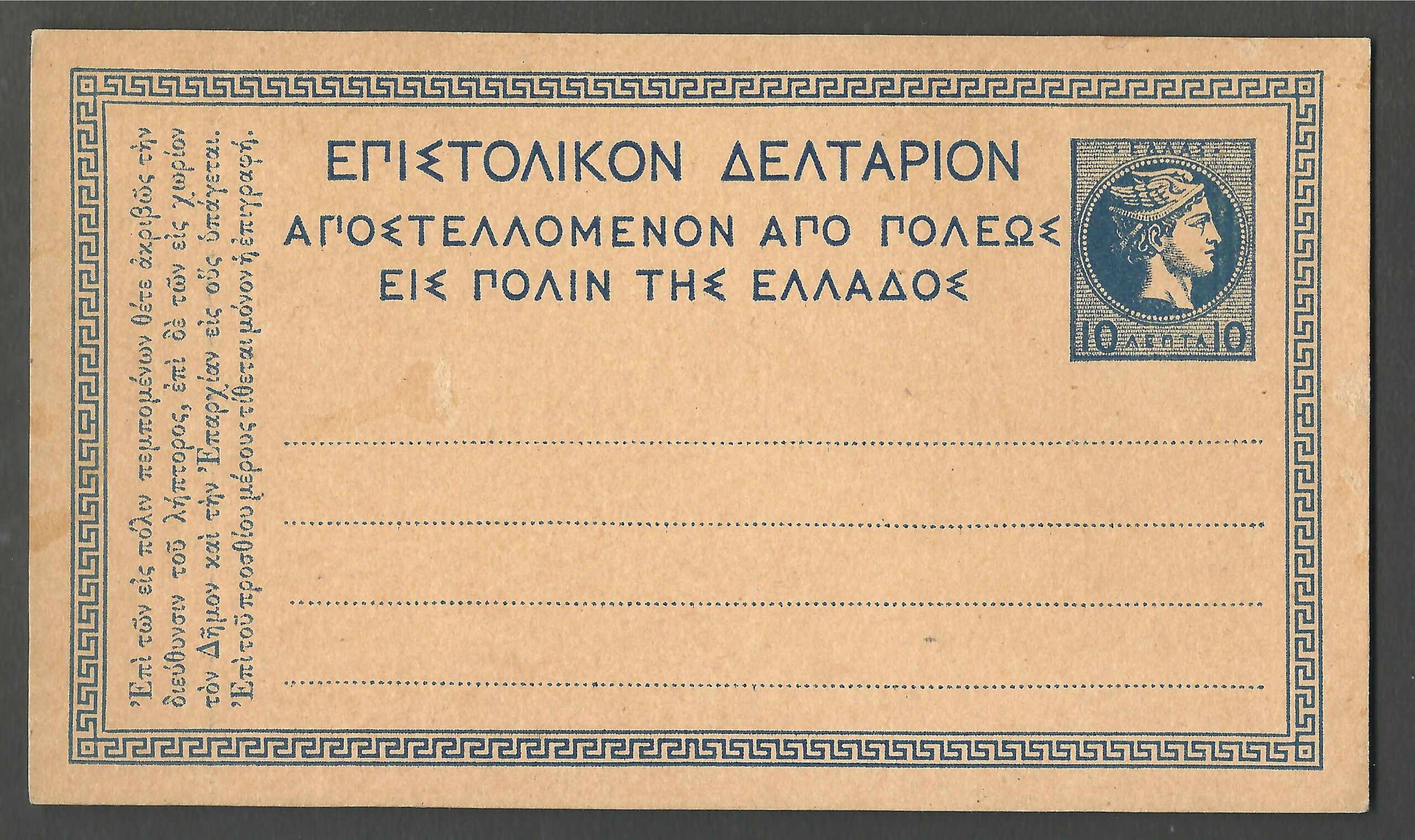 1895 ΔΕΛΤΑΡΙΟ ΑΘΗΝΩΝ 10 ΛΕΠΤΑ ΜΠΛΕ ΣΚΟΥΡΟ ΣΠΑΣΜΕΝΟ “Π” ΣΤΟ “ΑΠΟΣΤΕΛΛΟΜΕΝΟΝ”.