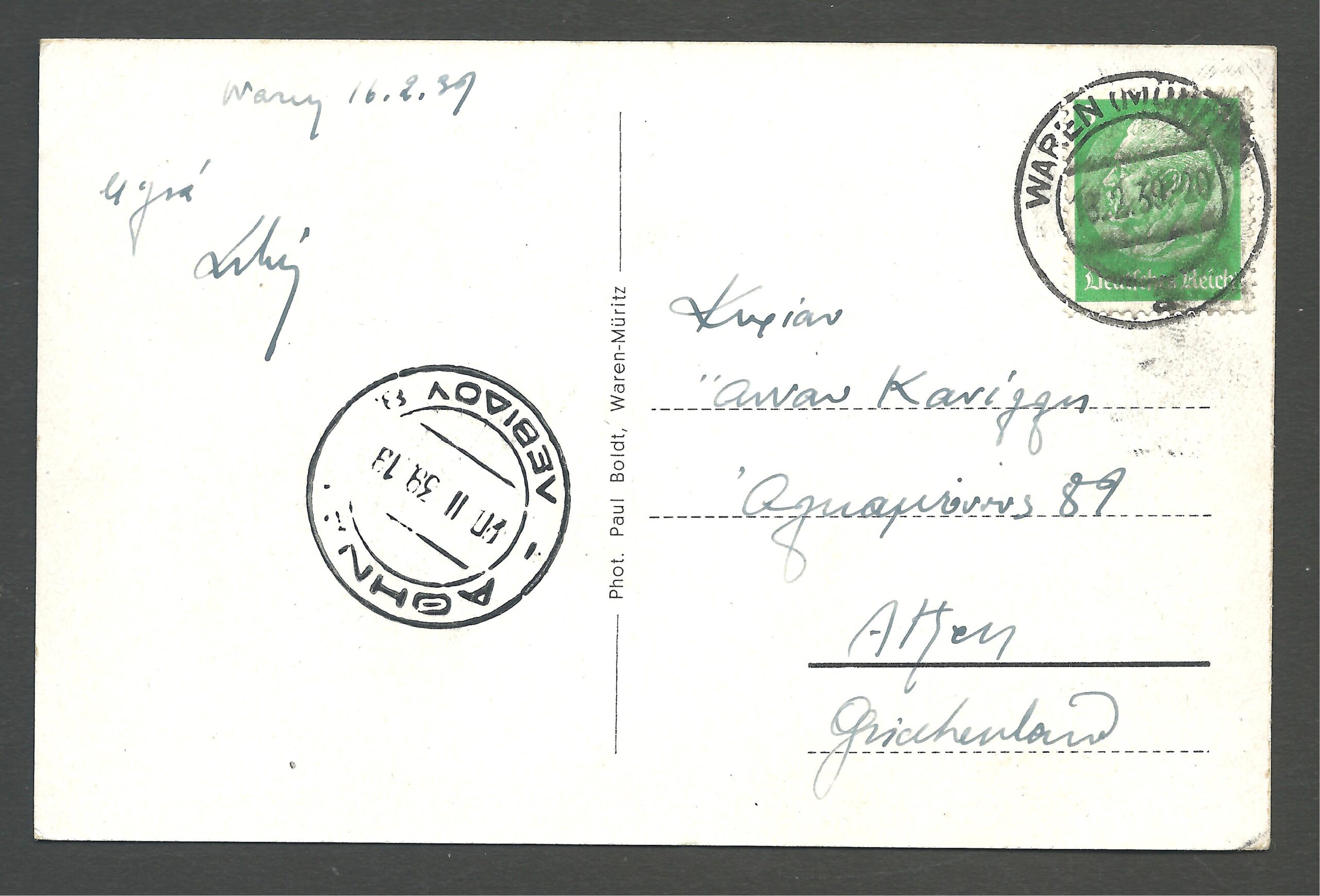 1939/18/02 ΤΑΧΥΔΡΟΜΗΜΕΝΗ ΚΑΡΤ ΠΟΣΤΑΛ. ΓΝΗΣΙΑ ΕΠΟΧΗΣ ΣΕ ΕΞΑΙΡΕΤΙΚΗ ΚΑΤΑΣΤΑΣΗ.
