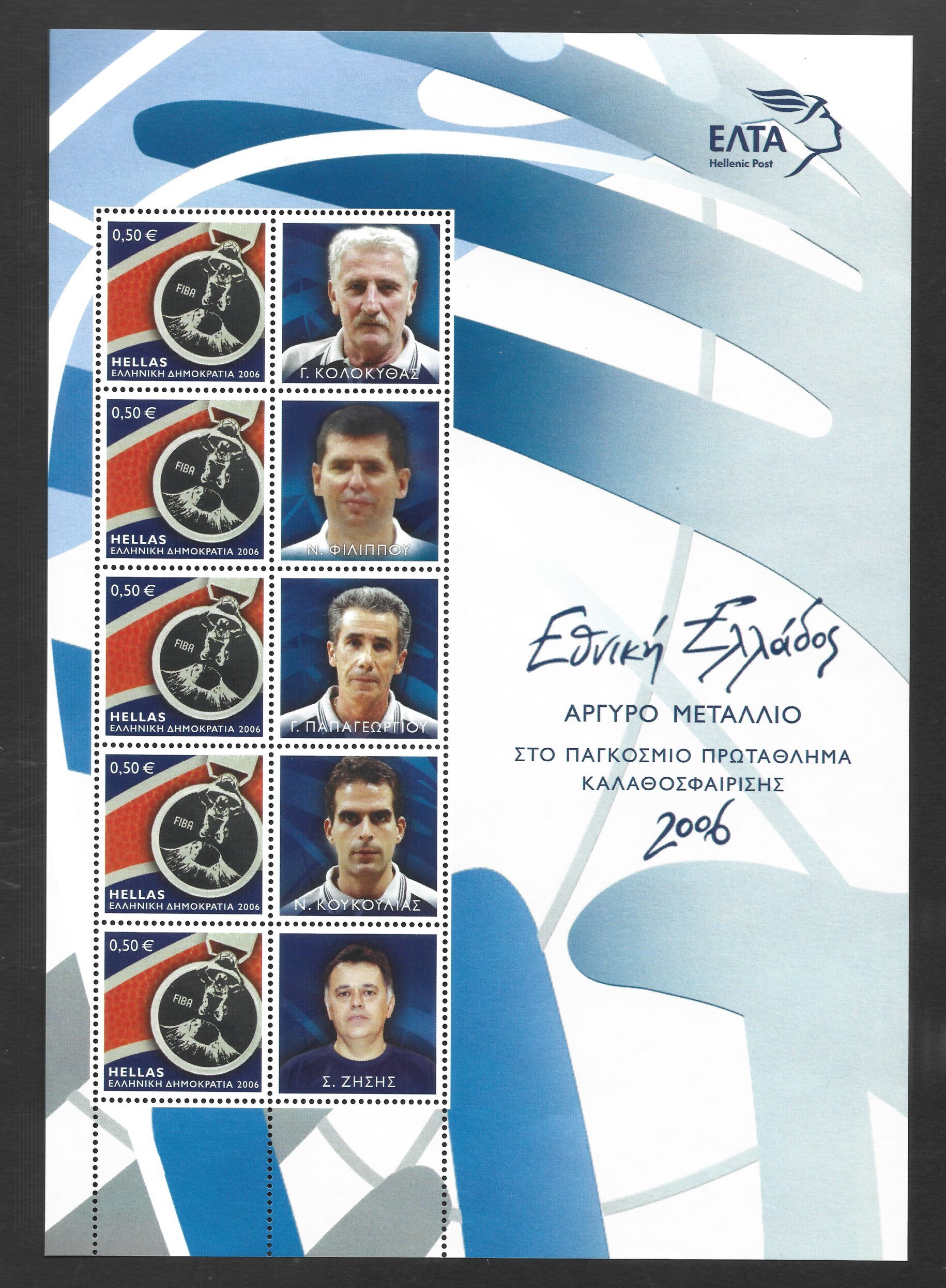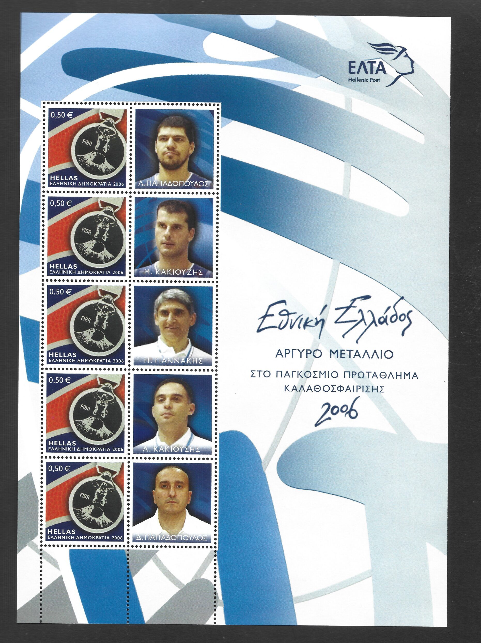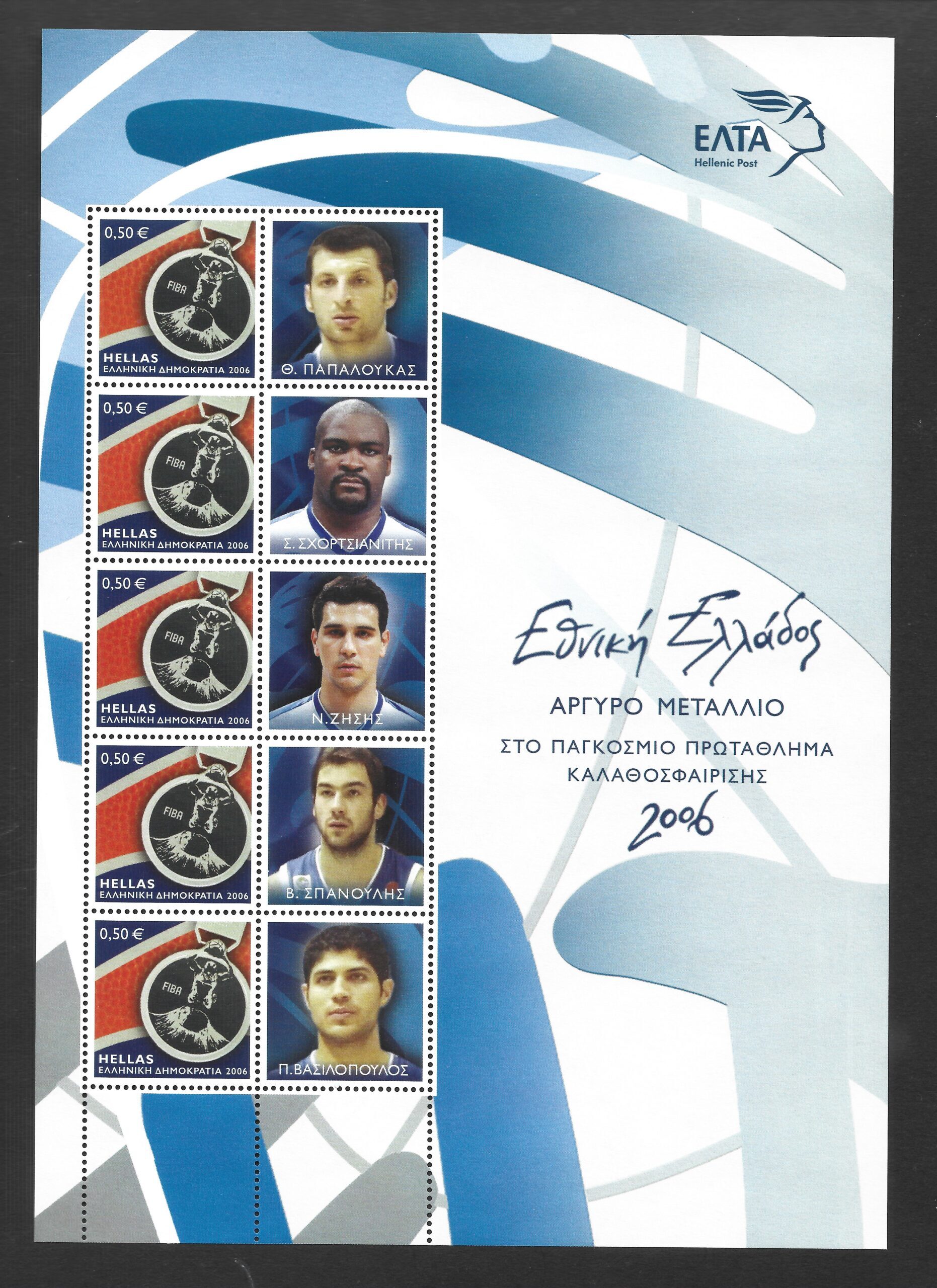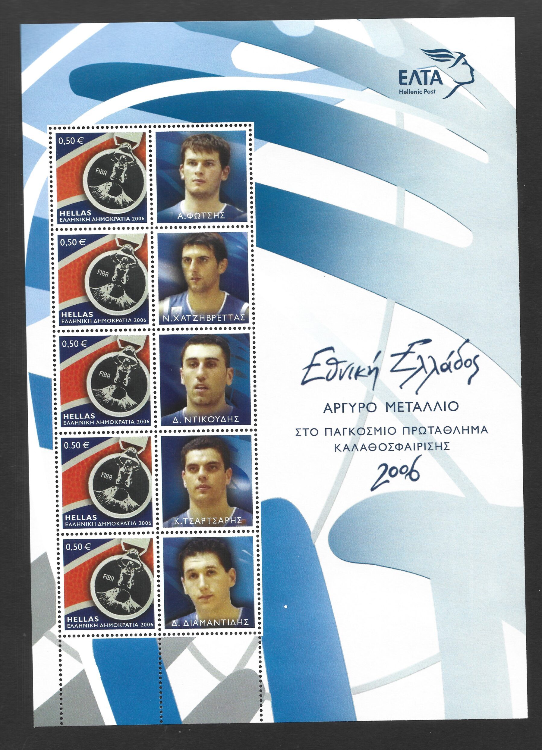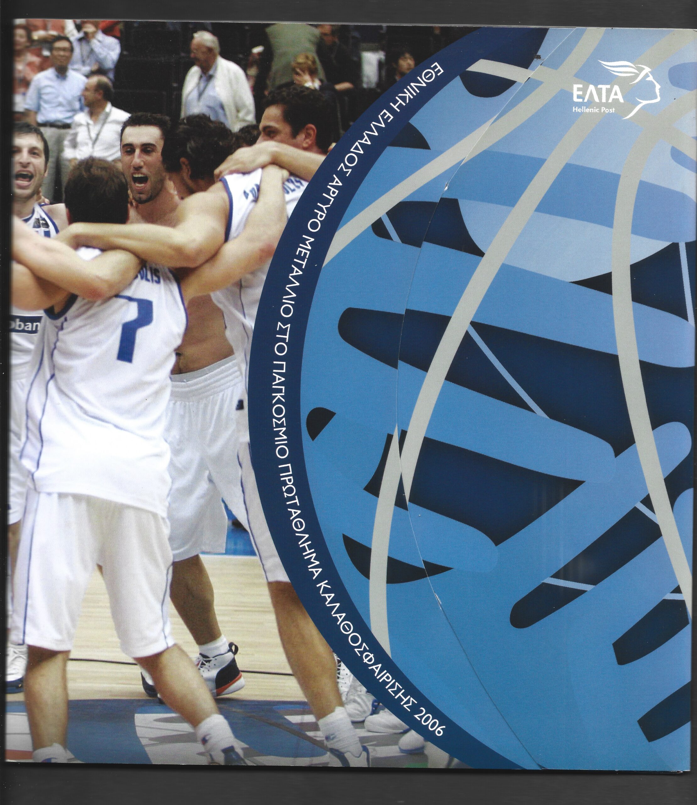 2006 Σετ 4 Φυλλαρακίων “Mundobasket 2006” σε αναμνηστικό λεύκωμα. (Κ78-Κ81). Πολυσέλιδη έκδοση των ΕΛΤΑ με πλήθος φωτογραφιών και στοιχείων όλων των αγώνων με την πορεία της Εθνικής και τέσσερα φυλλαράκια μεγέθους Α5. Ποσότητα 10.000. Διαστάσεις λευκώματος 21εκ. Χ 23 εκ. Φύλλα 11.