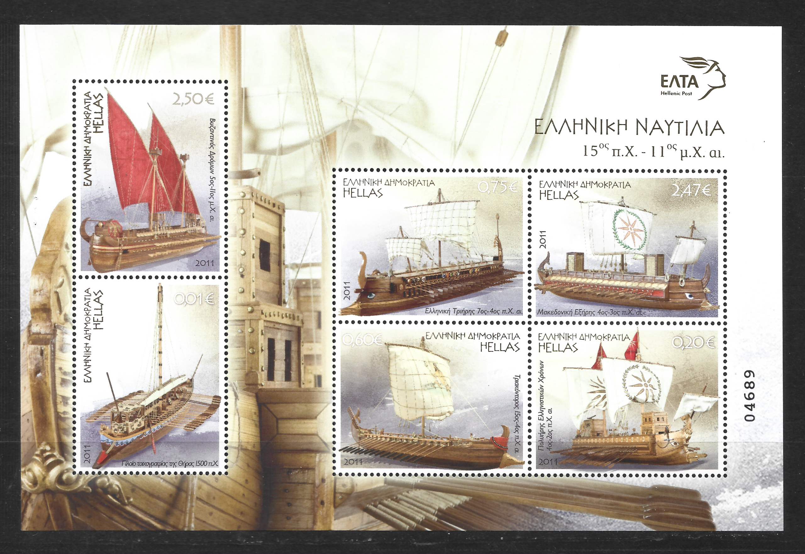 2011 Φυλλαράκι Αναμνηστικής Σειράς “Ελληνική Ναυτιλία” κομπλέ σειρά. Τρυπούλες (δυο) από συρραπτικό στην άκρη αριστερά.