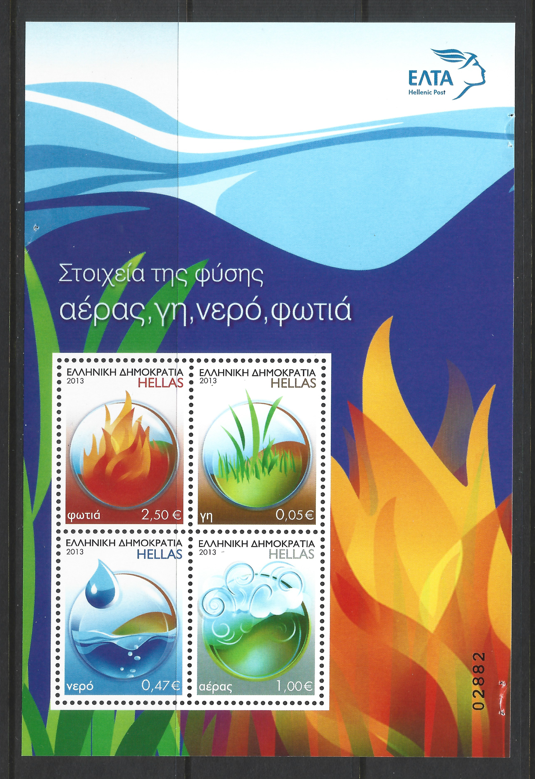 2013 Φυλλαράκι Αναμνηστικής Σειράς “Στοιχεία της Φύσης” κομπλέ σειρά. Με τρυπούλες από συρραπτικό στην άκρη.